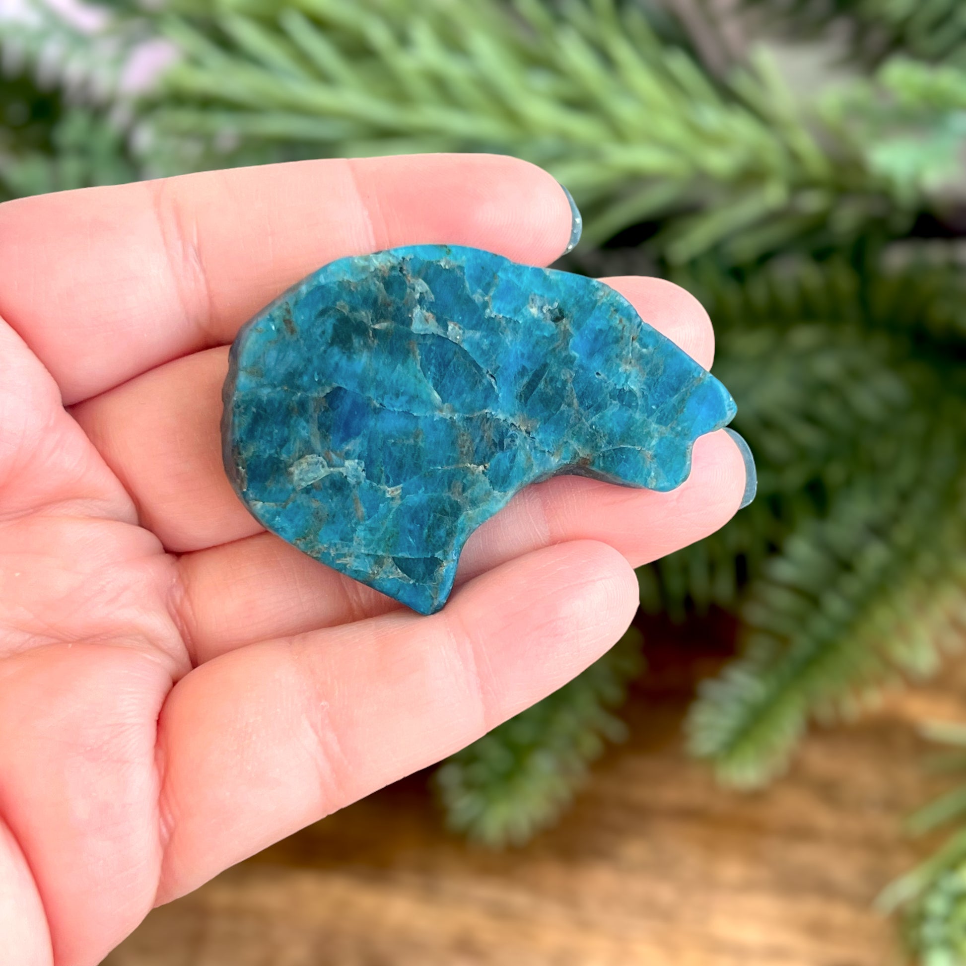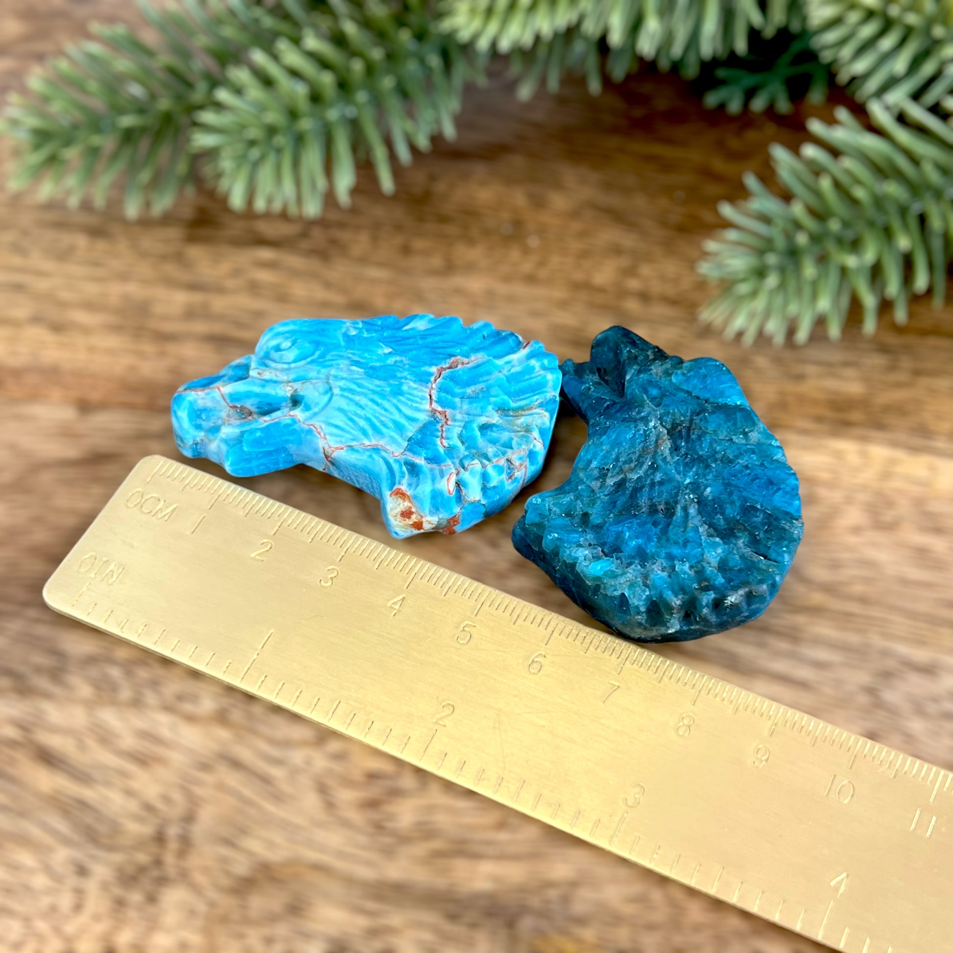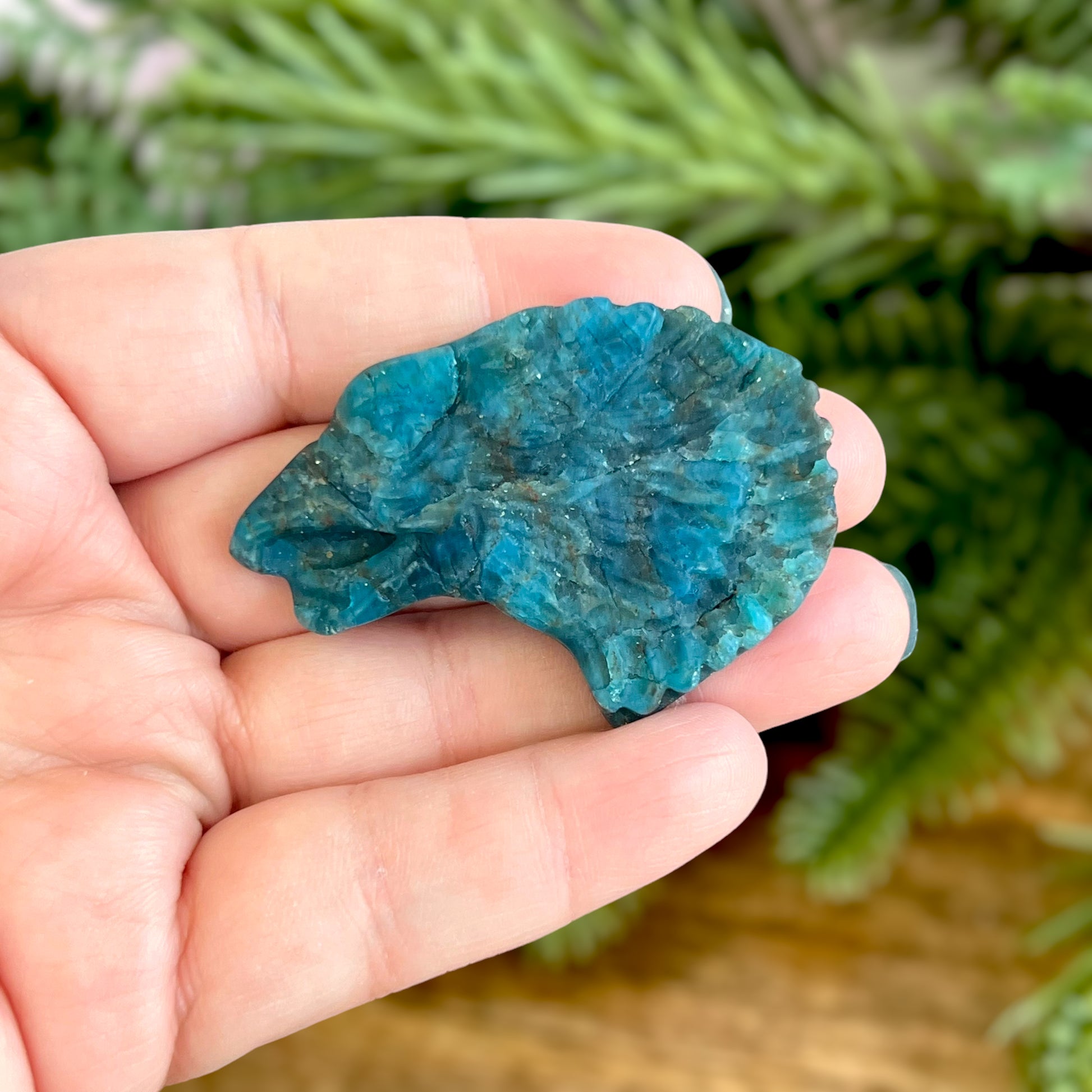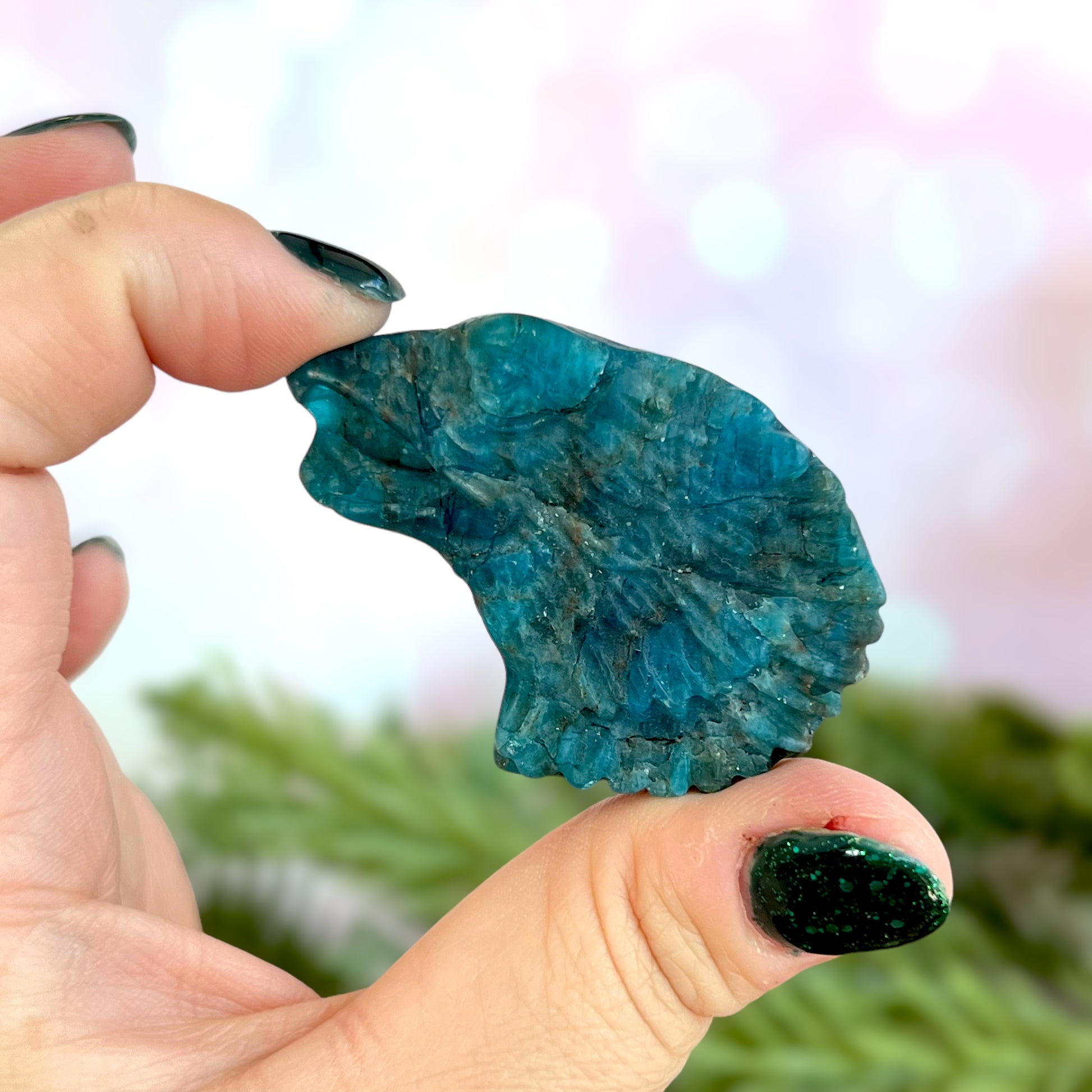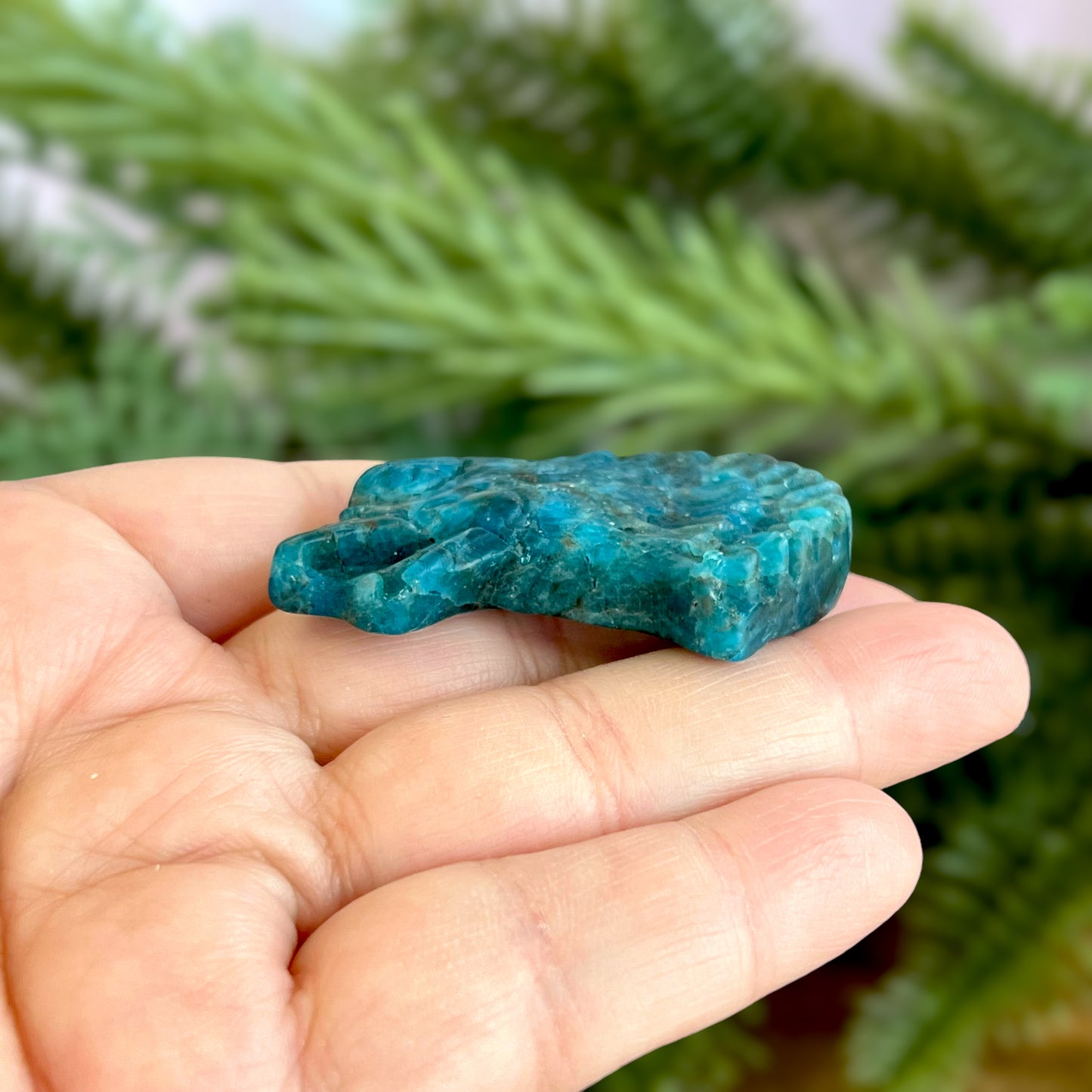 Enhance your spiritual practices with this beautiful Blue Apatite crystal carved stone cabochon. Features an intricate eagle's head carving