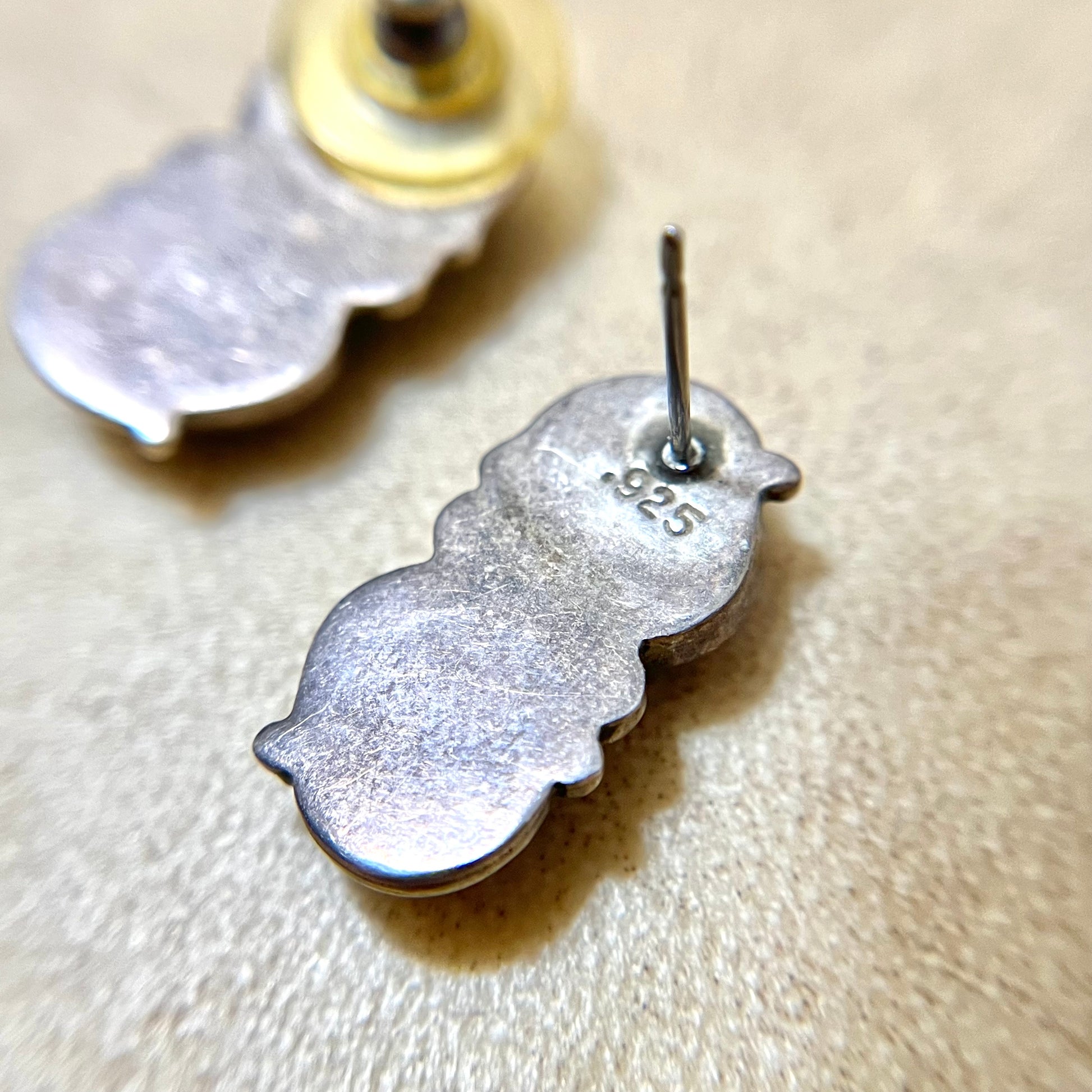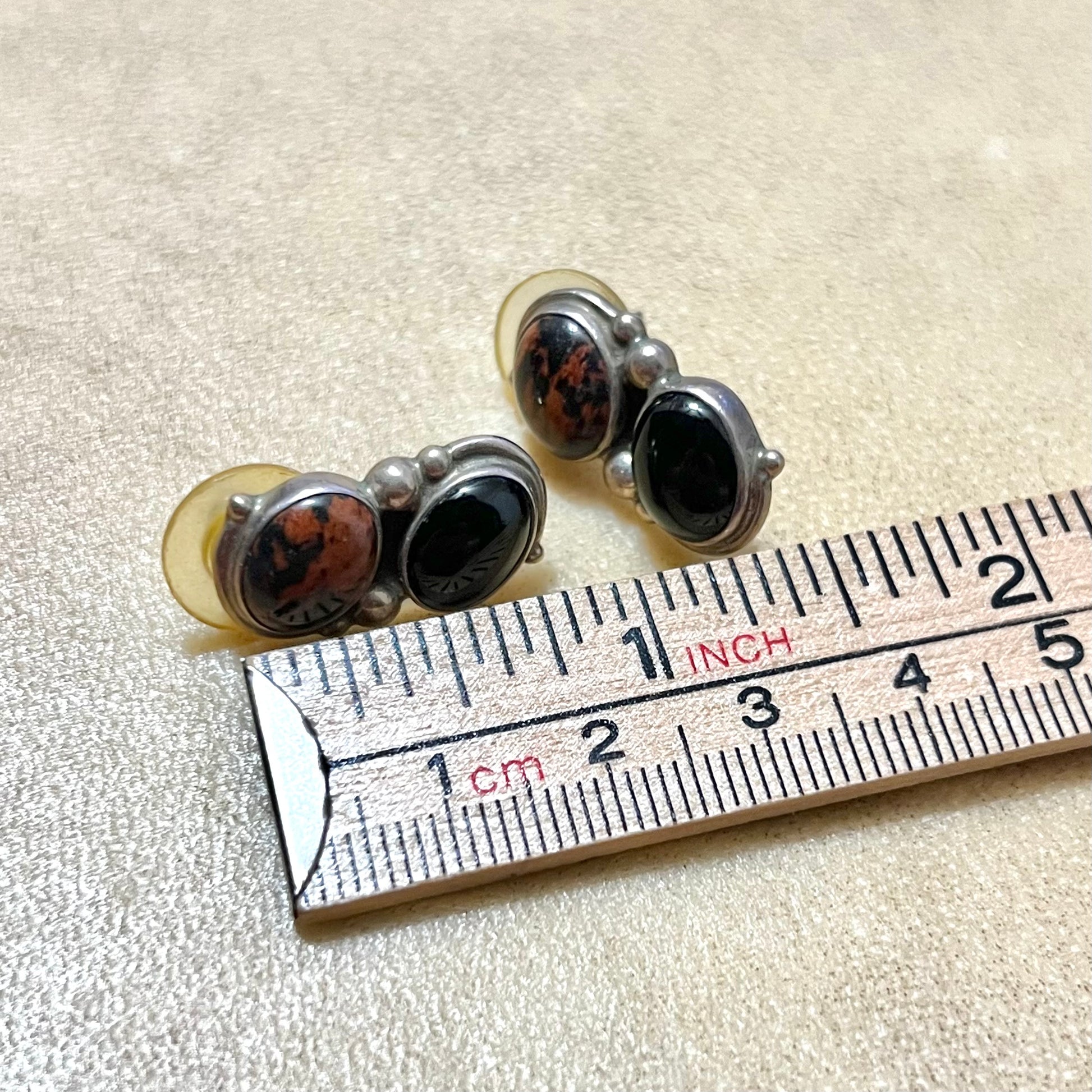 Mahogany & Black Obsidian Sterling Silver Vintage Pierced Stud Earrings