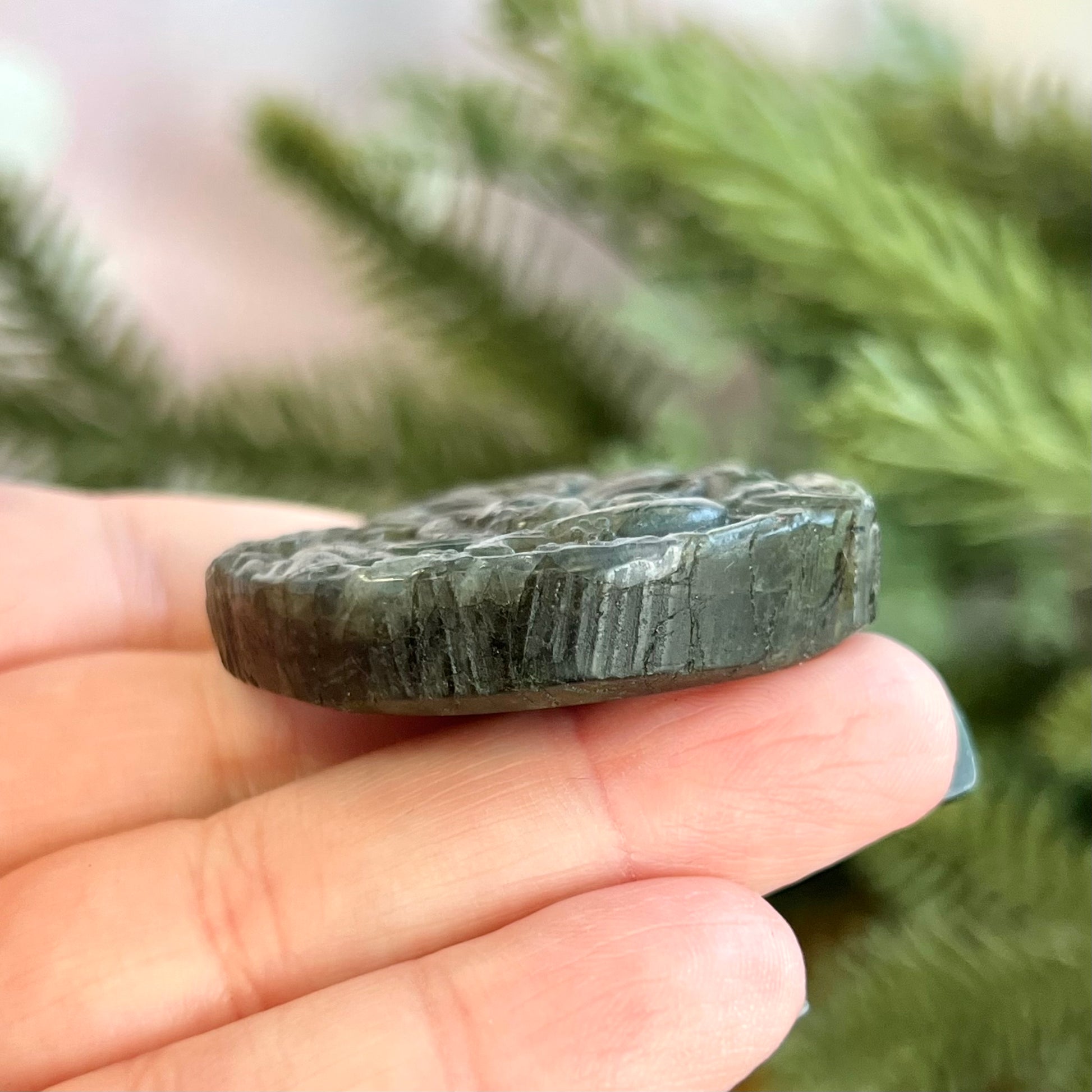 You’ll receive the exact cabochon in the photos. We hand-select each stone for its natural beauty, color, and soothing energy. Photos with multiple crystals are for example only.