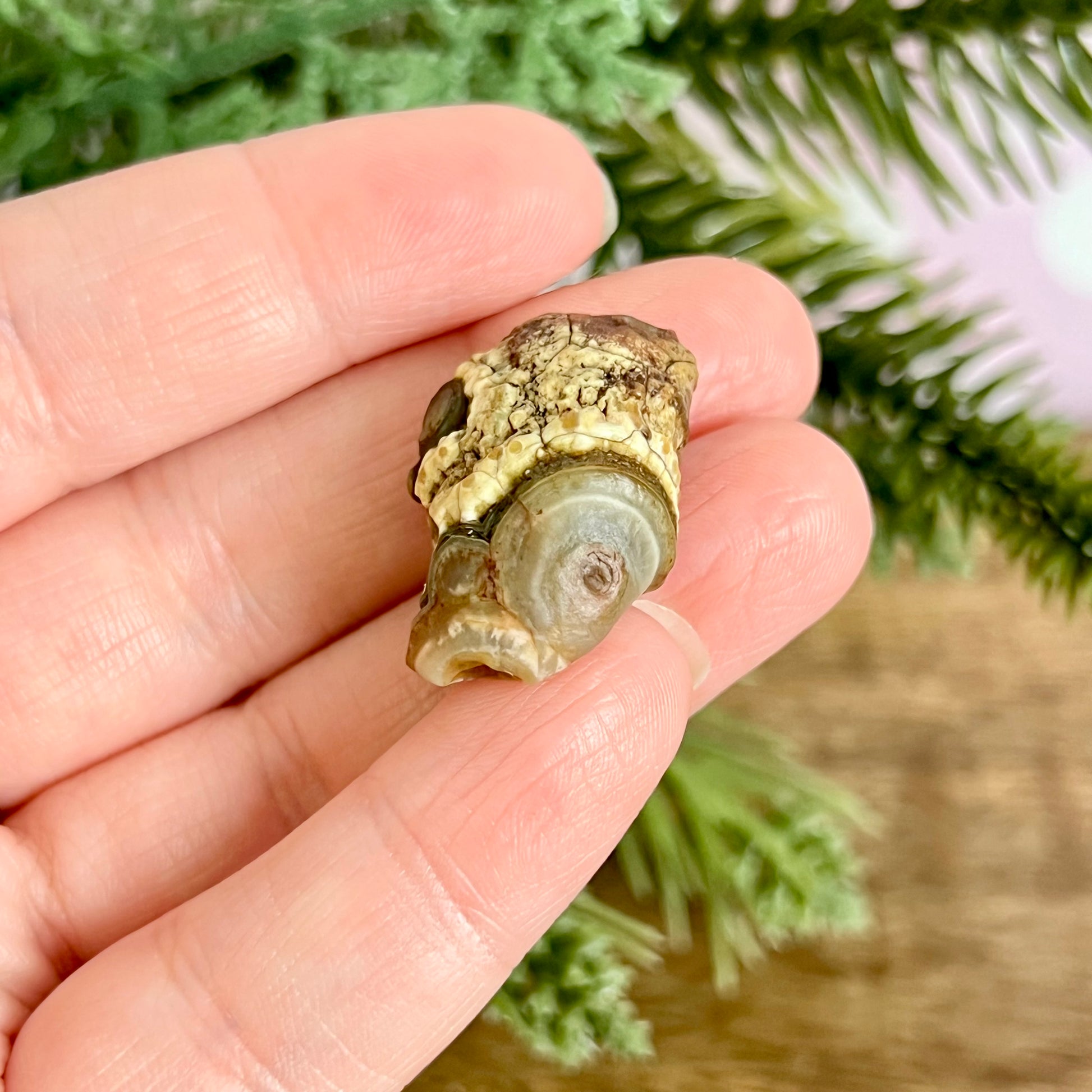 Enhance your spiritual practices with this beautiful Gobi Desert Agate natural gemstone specimen. This crystal is naturally tumbled to a satin finish by the desert sands being blown over its surface. Has a very pronounced eye pattern.