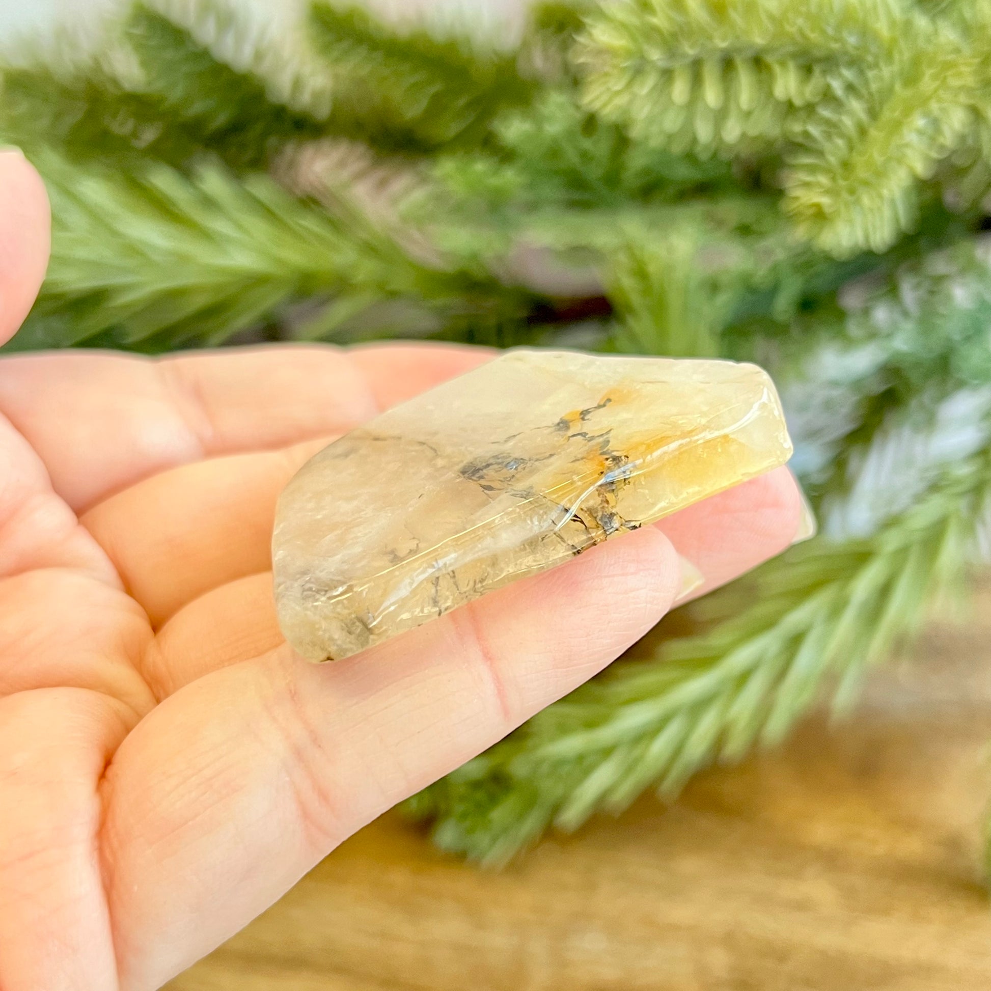Enhance your spiritual practices with this beautiful Golden Healer Quartz tumble. This crystal has black dendritic inclusions alongside wisps of sunny yellow.