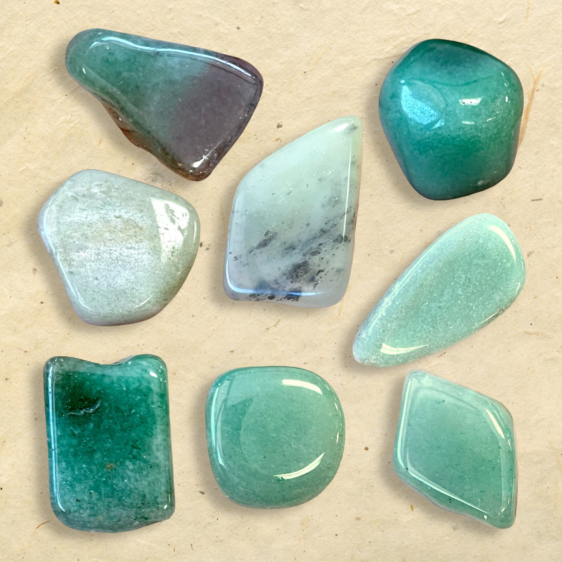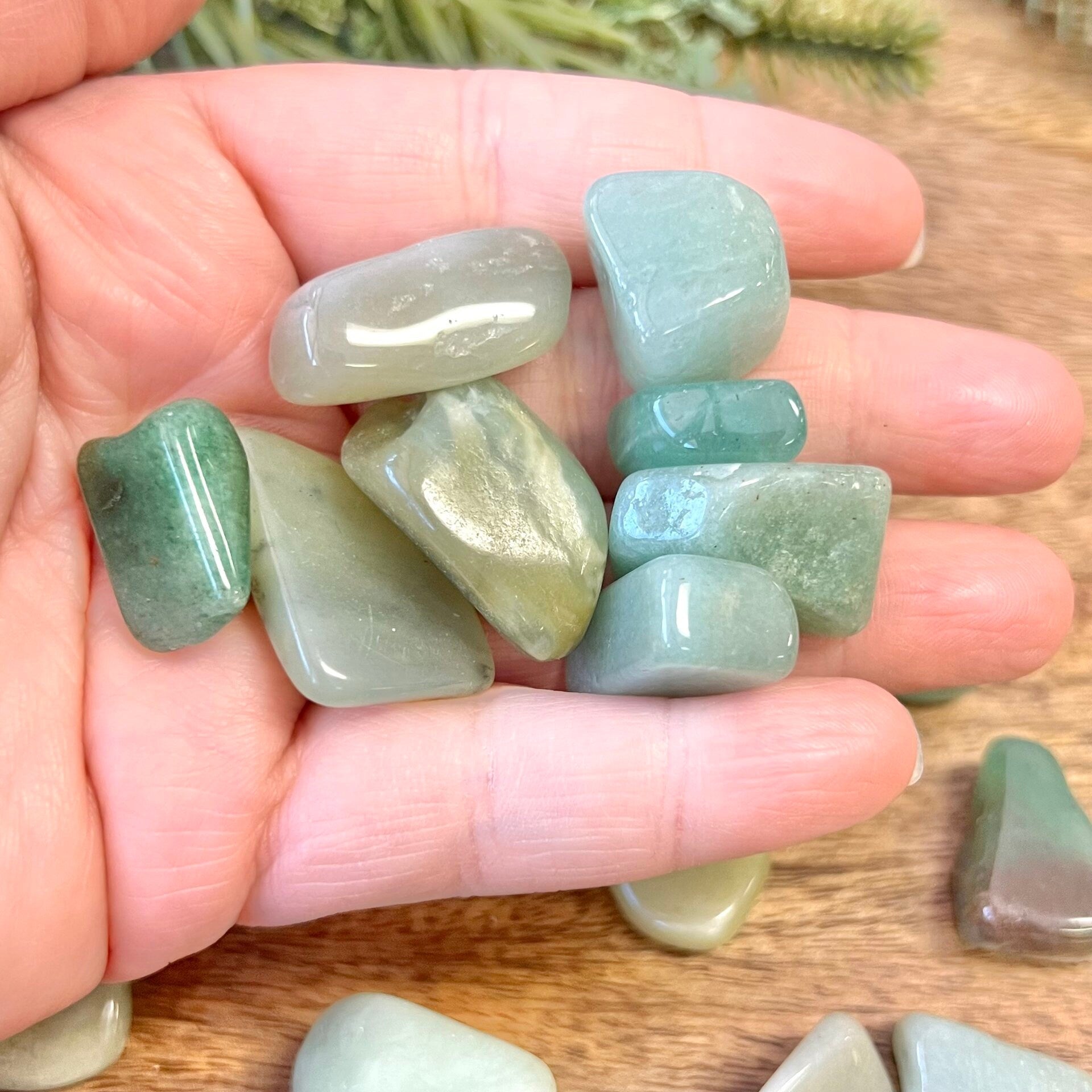 Enhance your spiritual practices with these beautiful tumbled Green Aventurine crystals. Their radiant green hue perfectly embodies the wealth and abundance they represent.