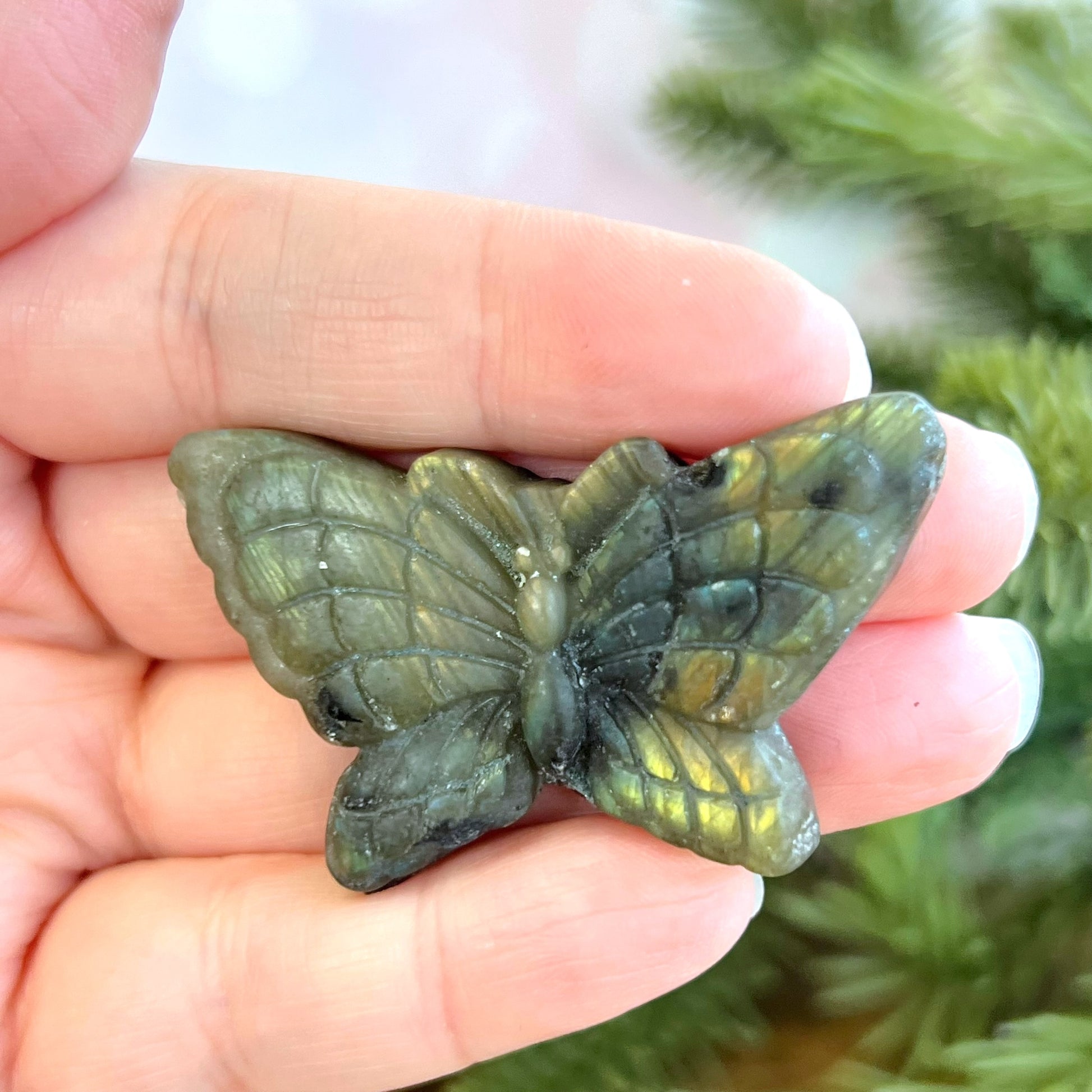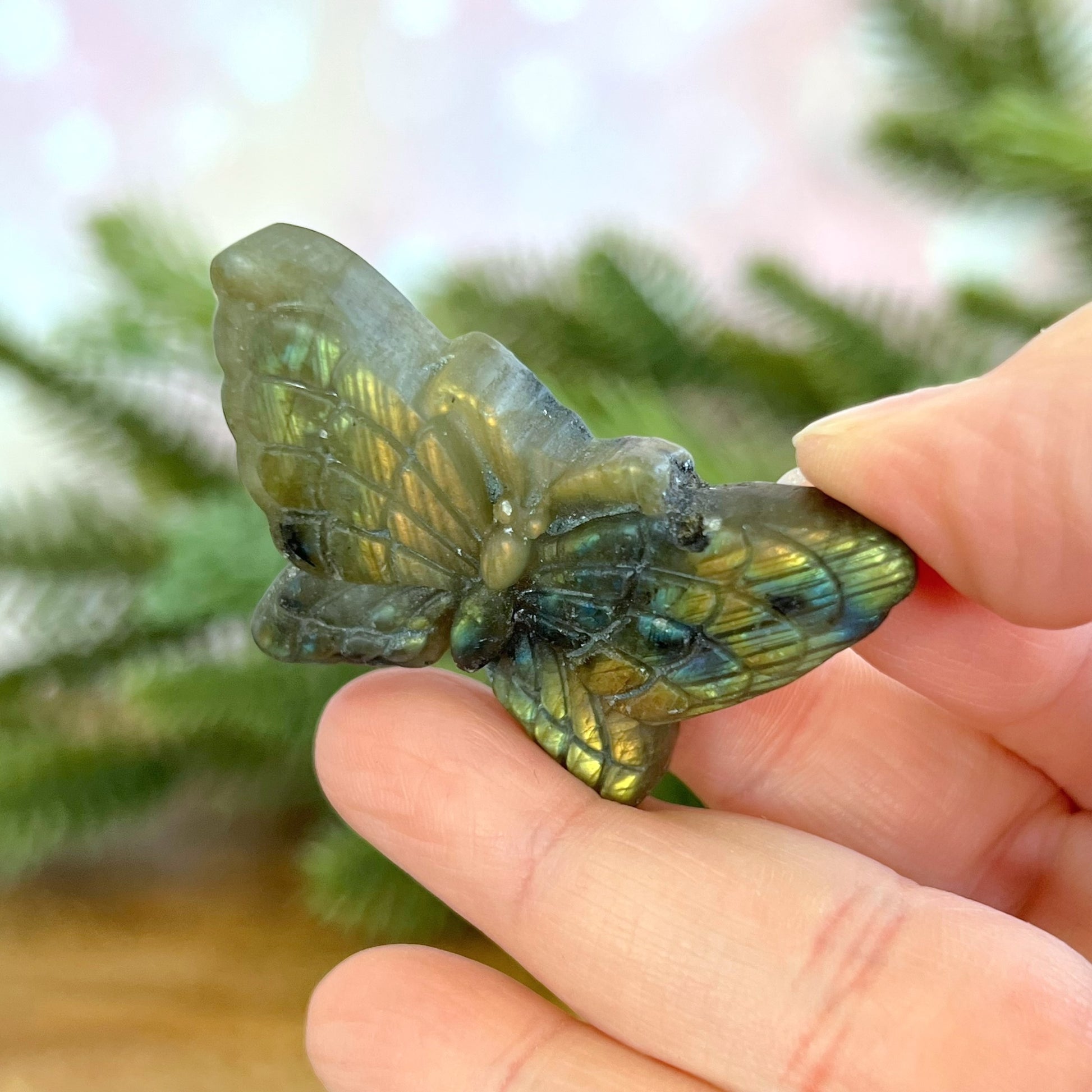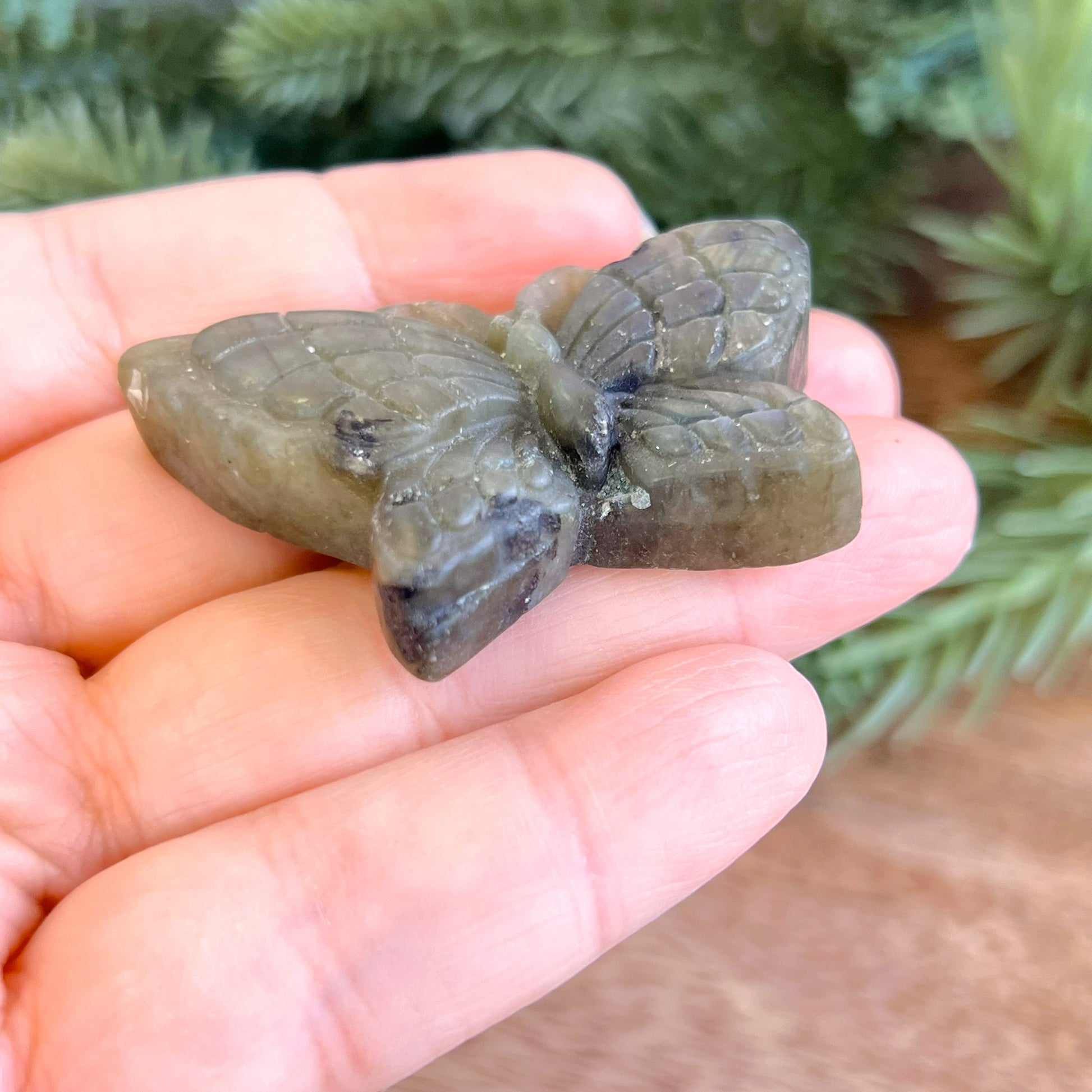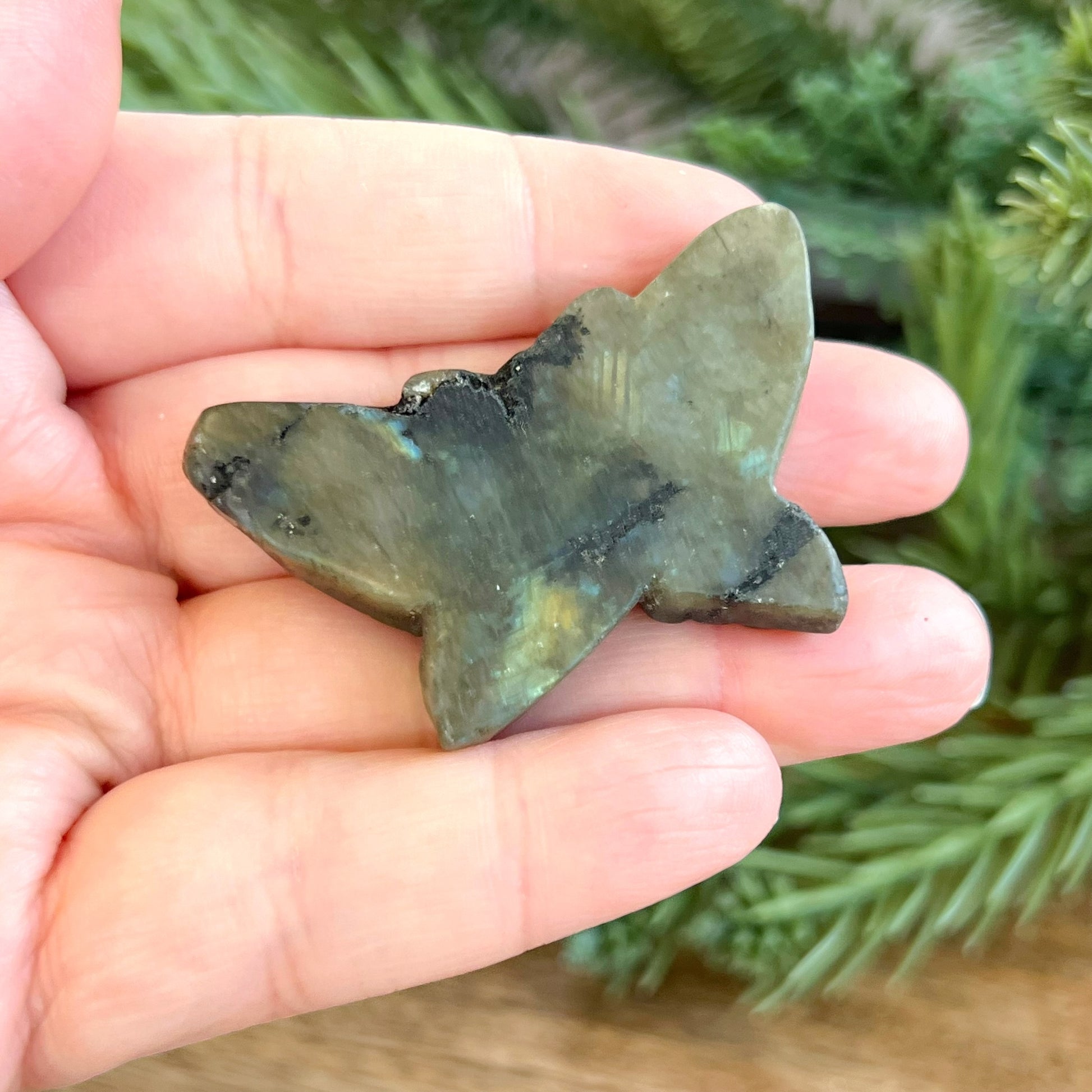 Enhance your spiritual practices with this beautiful Labradorite carved stone cabochon. This crystal features a detailed butterfly. Butterflies are the perfect companion for times of transformation and change in our lives.