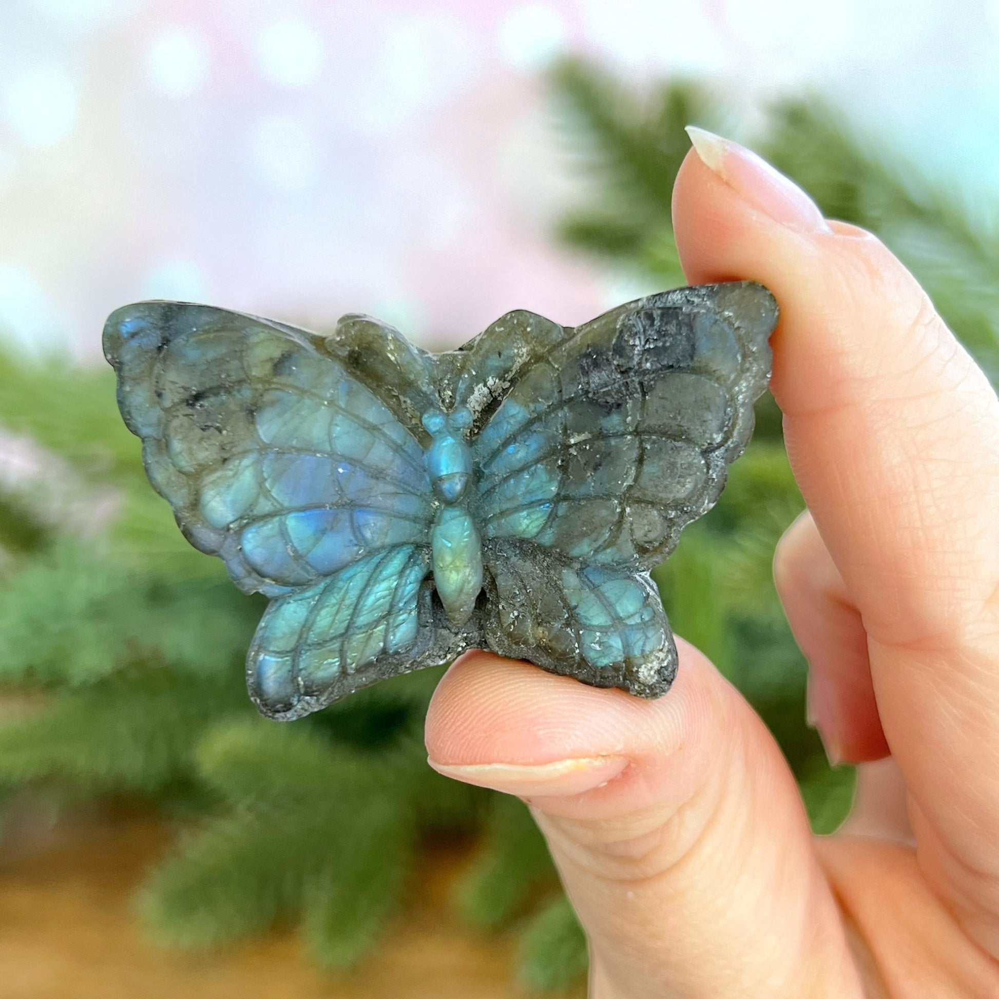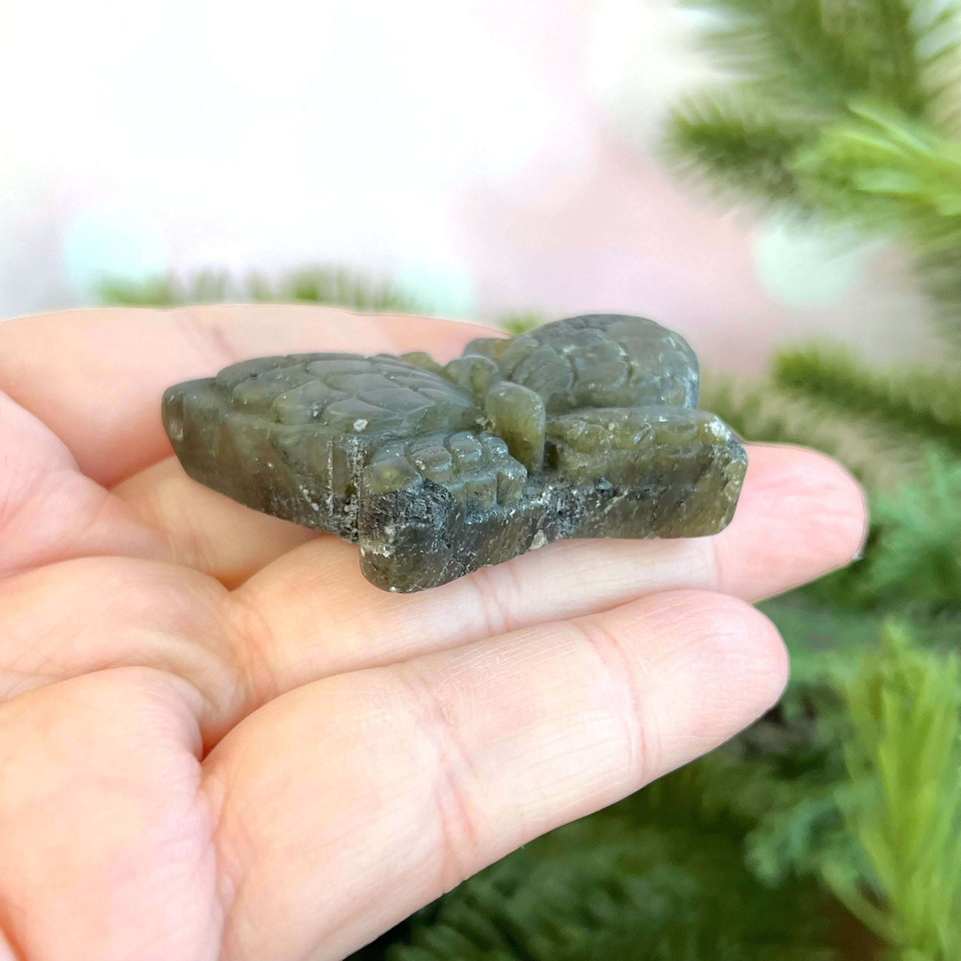 Enhance your spiritual practices with this beautiful Labradorite carved stone cabochon. This crystal features a detailed butterfly. Butterflies are the perfect companion for times of transformation and change in our lives.