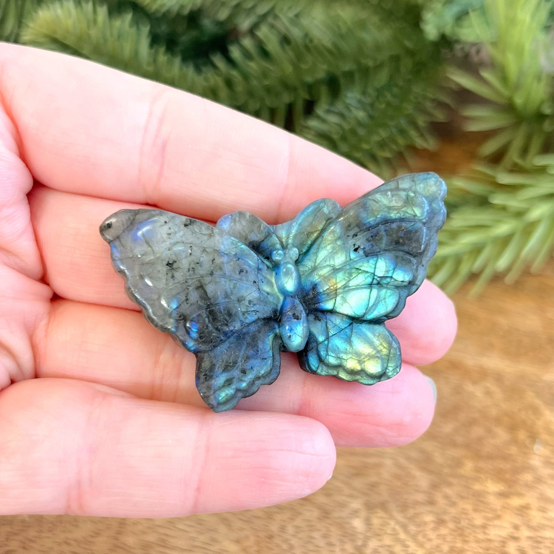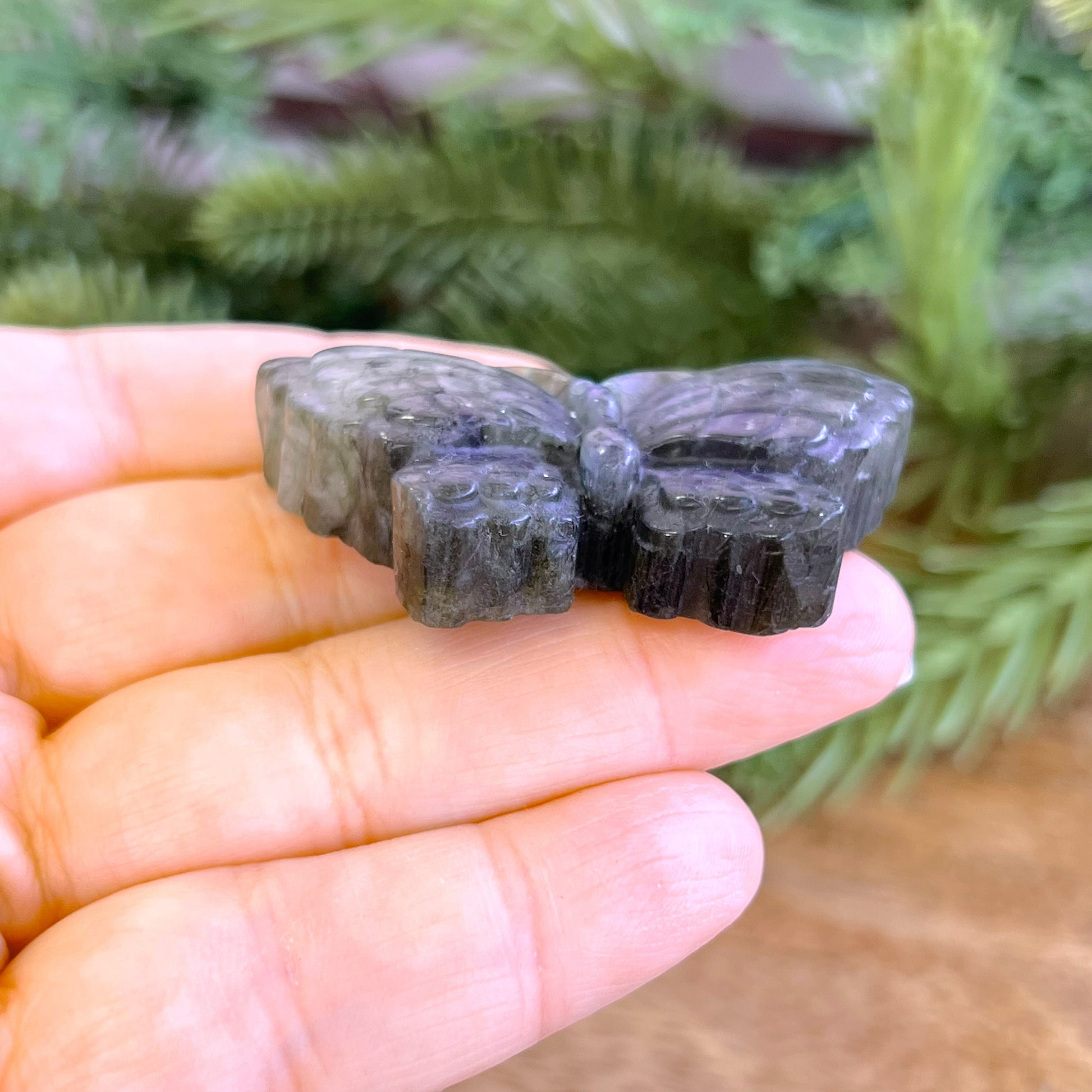 Enhance your spiritual practices with this beautiful Labradorite carved stone cabochon. This crystal features a detailed butterfly. Butterflies are the perfect companion for times of transformation and change in our lives.