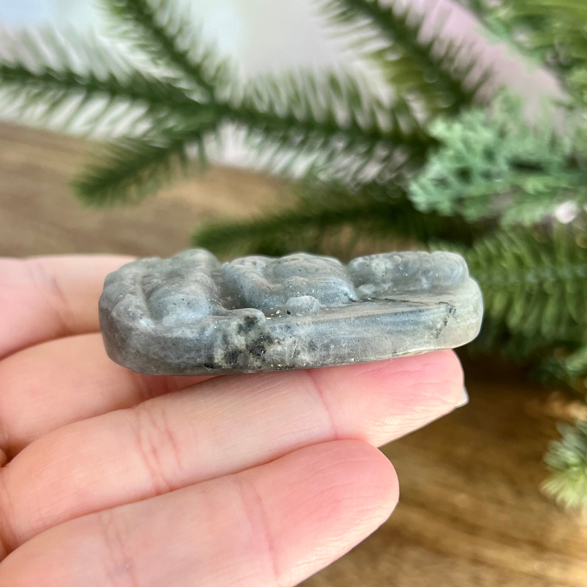 Labradorite Meditating Buddha Carved Stone Cabochon