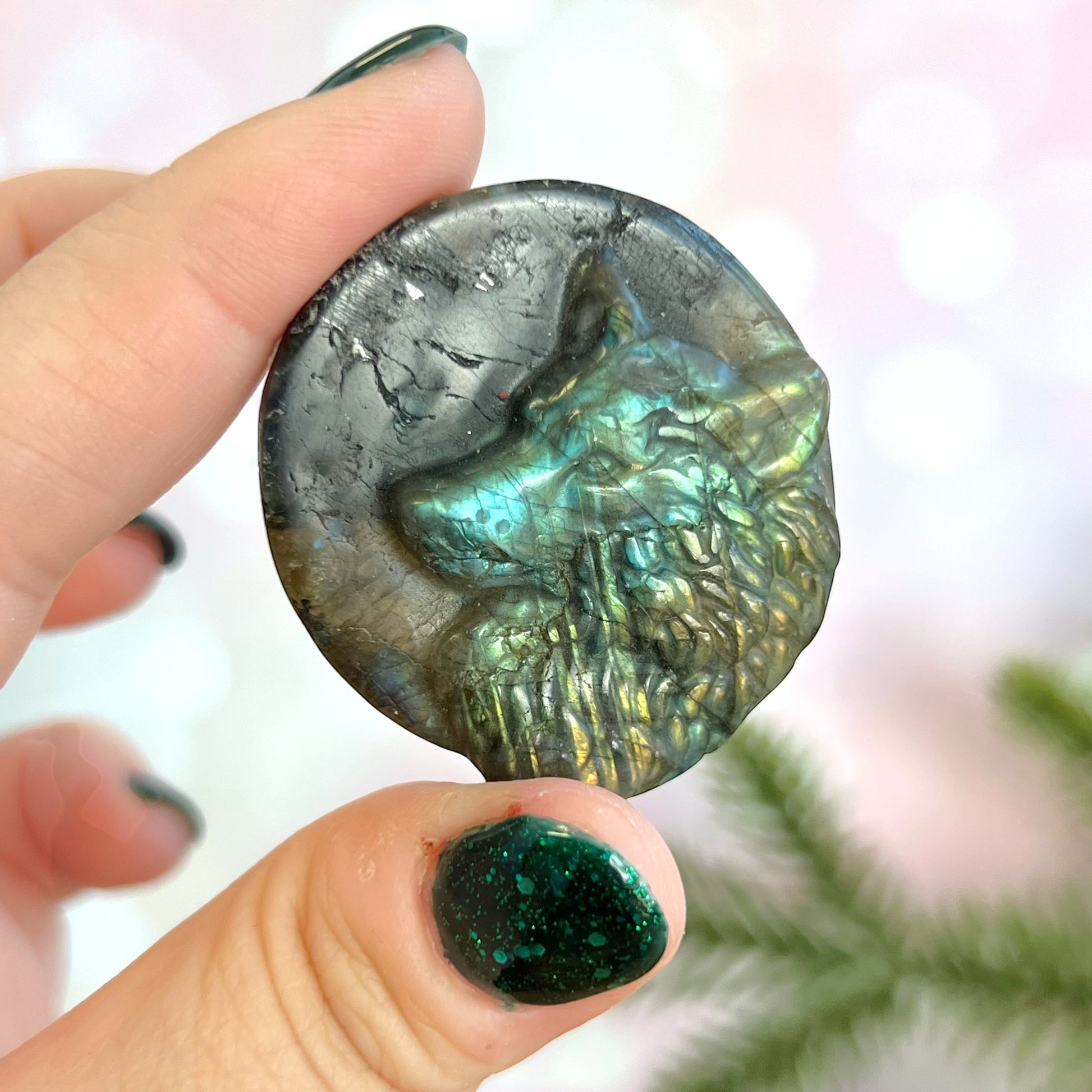 Labradorite Wolf Carved Crystal Cabochon