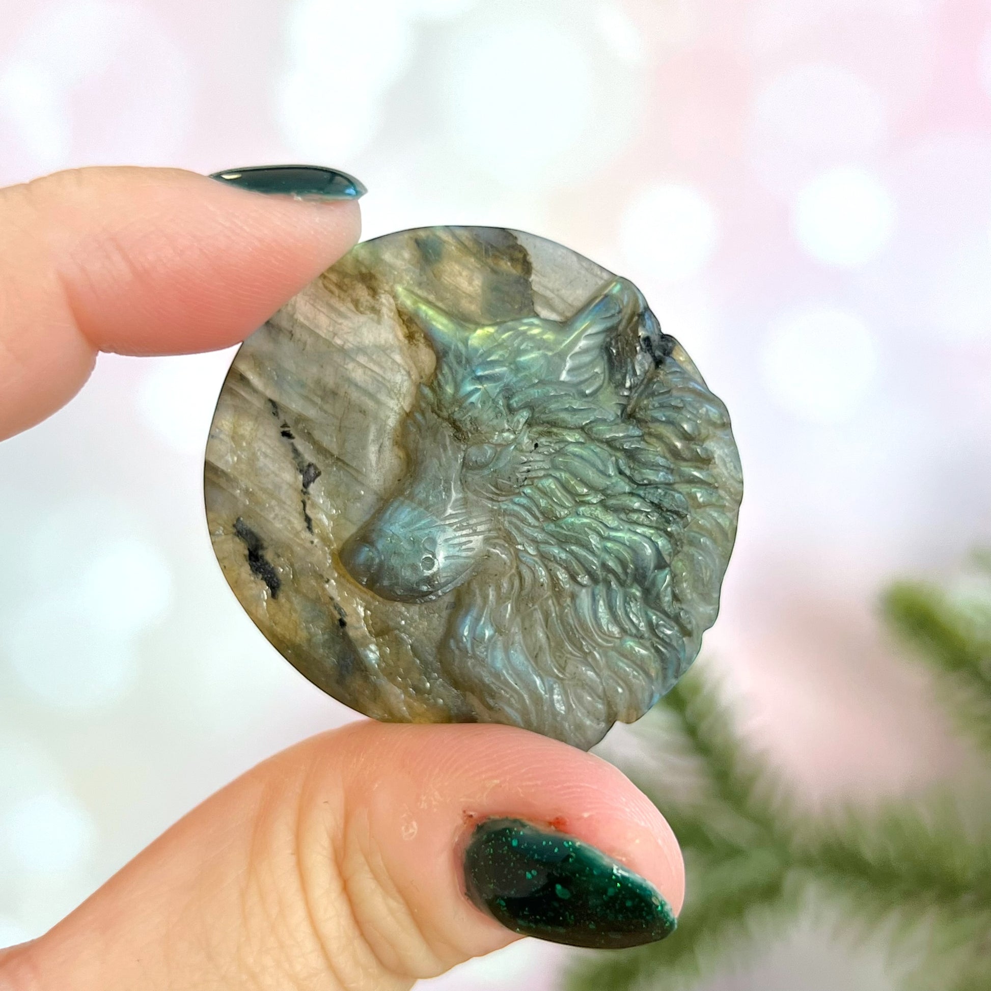 Labradorite Wolf Carved Crystal Cabochon