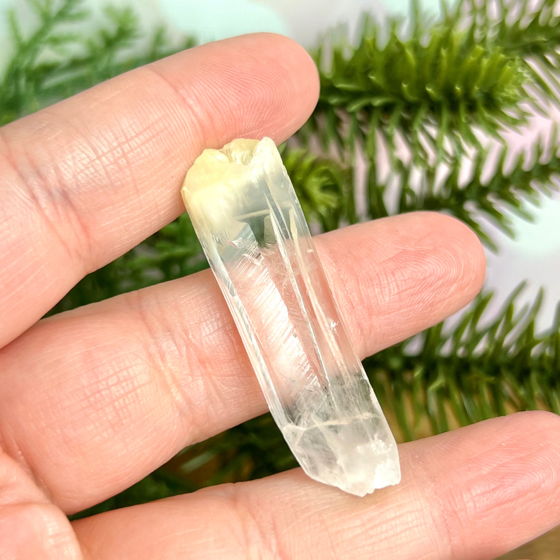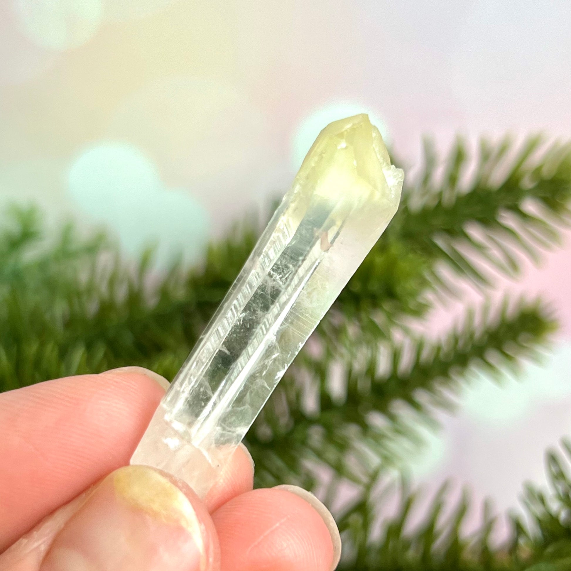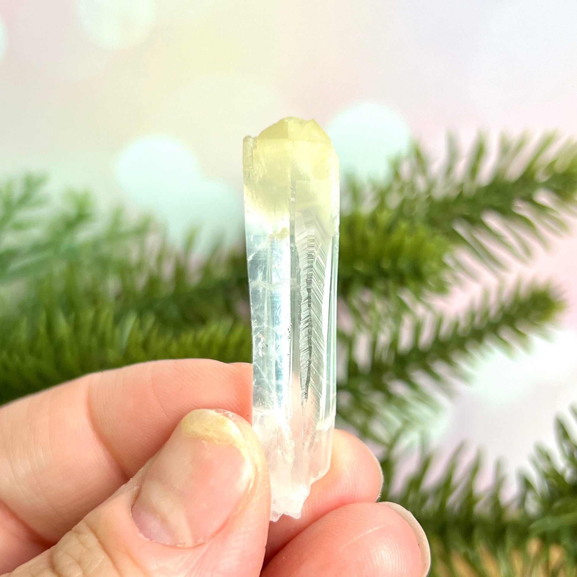 Enhance your spiritual practices with this beautiful Mango Quartz natural gemstone specimen. This crystal features a Clear Quartz base, with inclusions of Halloysite. Very interesting etchings.