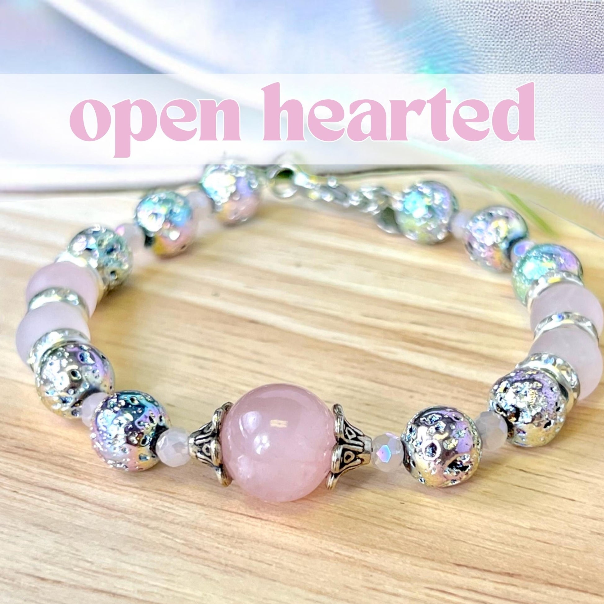 Sometimes it's hard to remain open-hearted. This bracelet is a wearable reminder to live from love instead of fear, and embrace your vulnerability. Handmade with a blend of crystals traditionally associated with the Heart Chakra and protection.