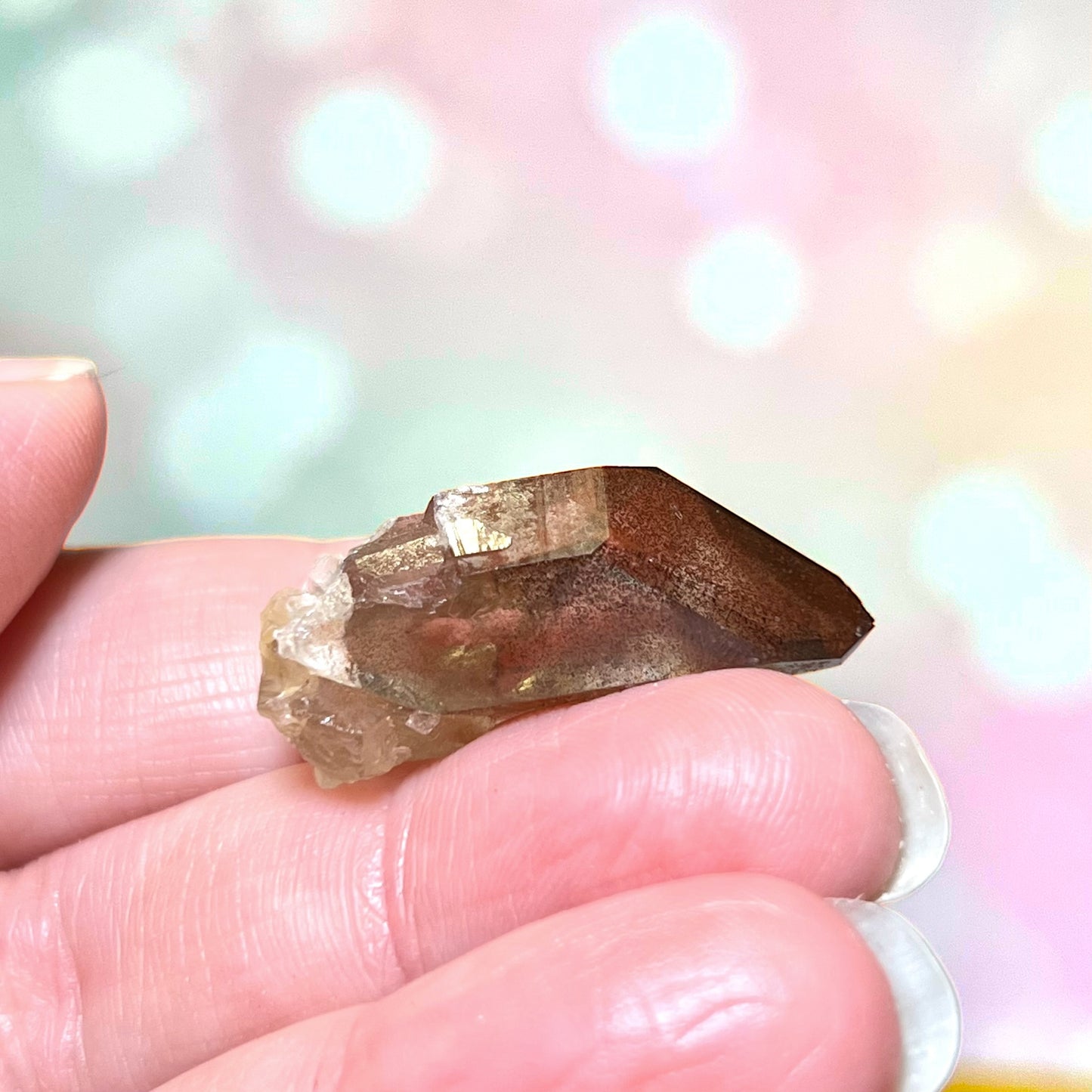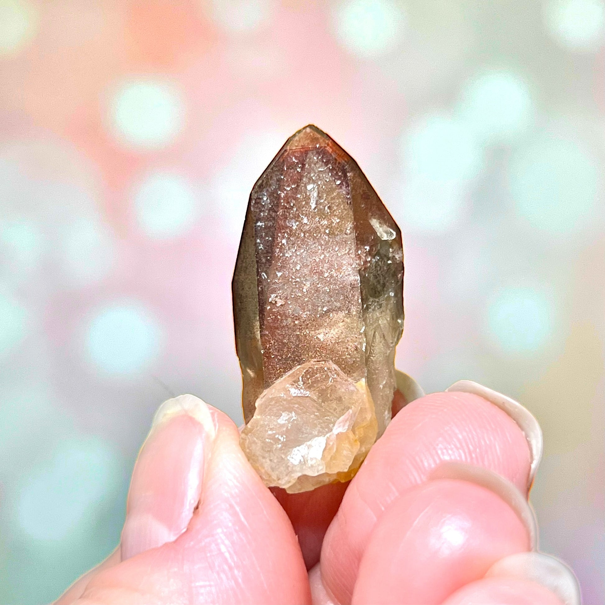 Enhance your spiritual practices with this beautiful Orange River Quartz natural gemstone specimen. This crystal features a translucent base with rusty inclusions.