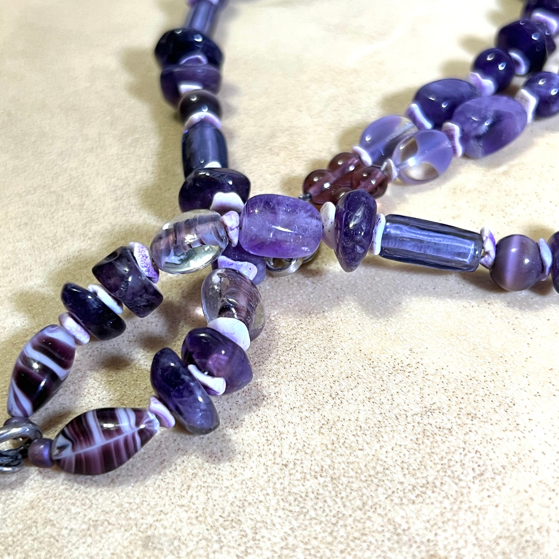 Purple Agate & Crystal Frog Beaded Amethyst Necklace - Vintage