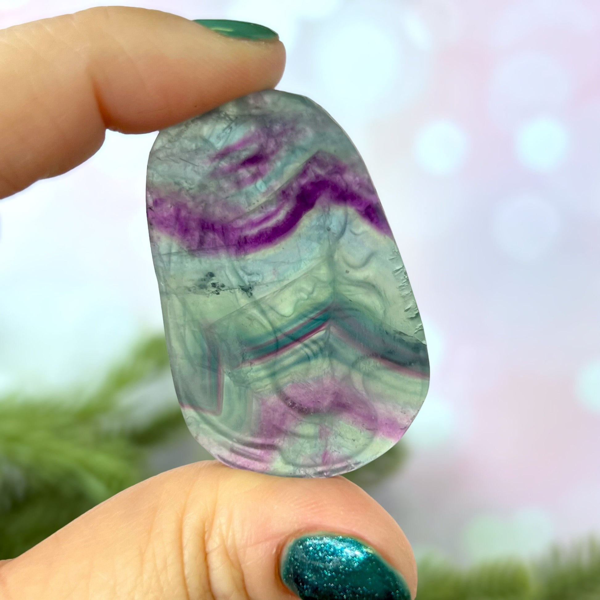 Enhance your spiritual practices with this beautiful Rainbow Fluorite crystal carved stone cabochon. Featuring a cameo of a beautiful woman, done in an Art Nouveau style.
