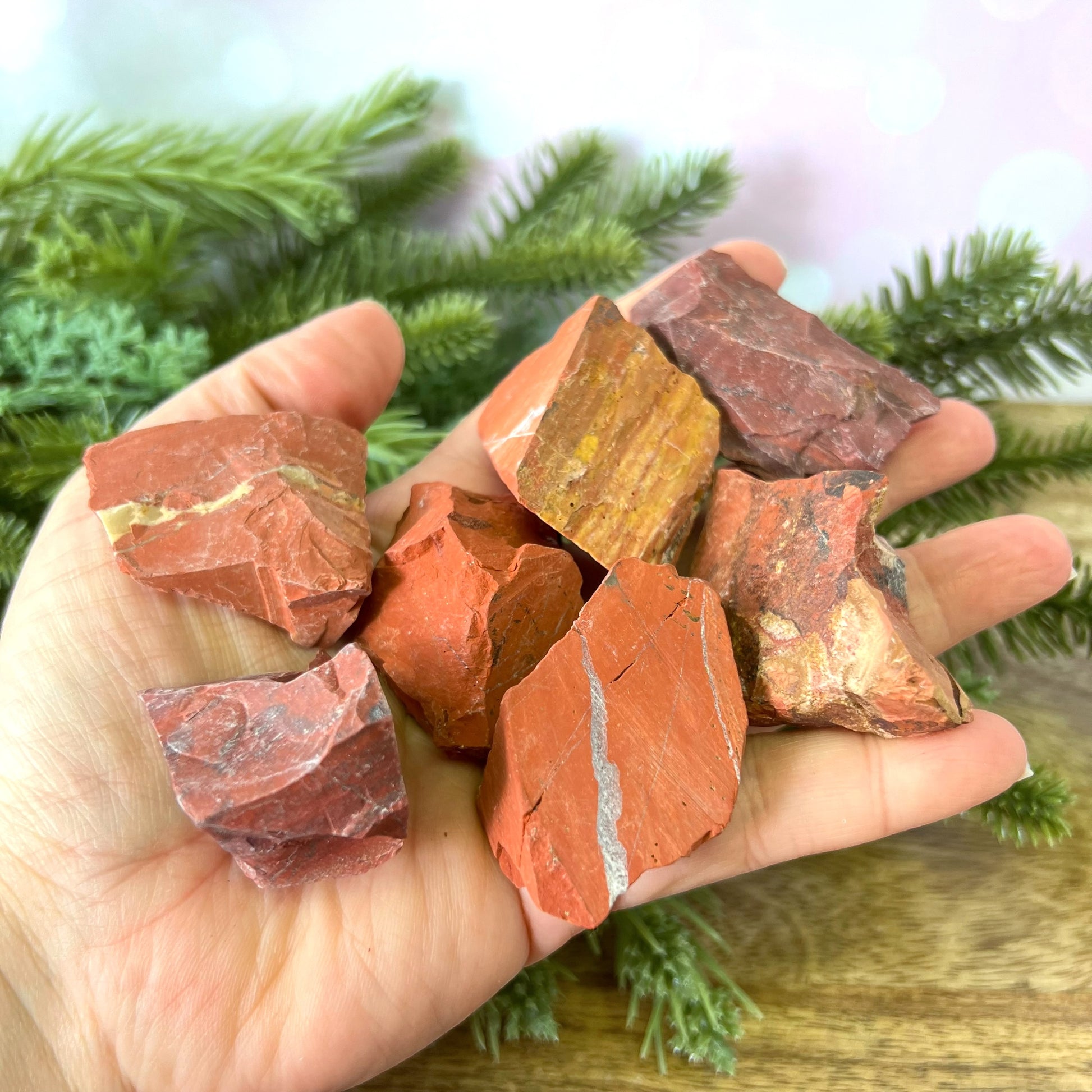 Enhance your spiritual practices with this natural rough Red Jasper specimen. This earthy colored crystal may have splashes and bands of cream and black inclusions. Perfect for Root Chakra work.