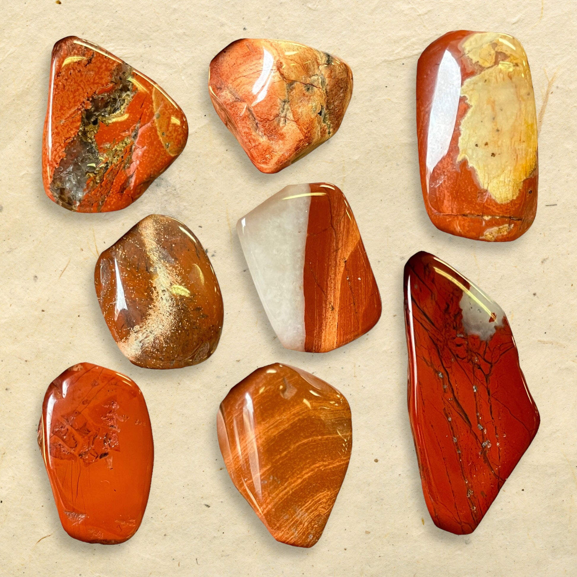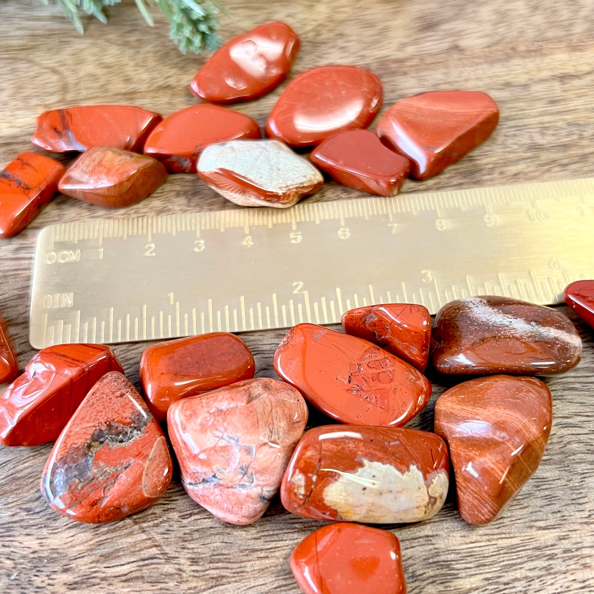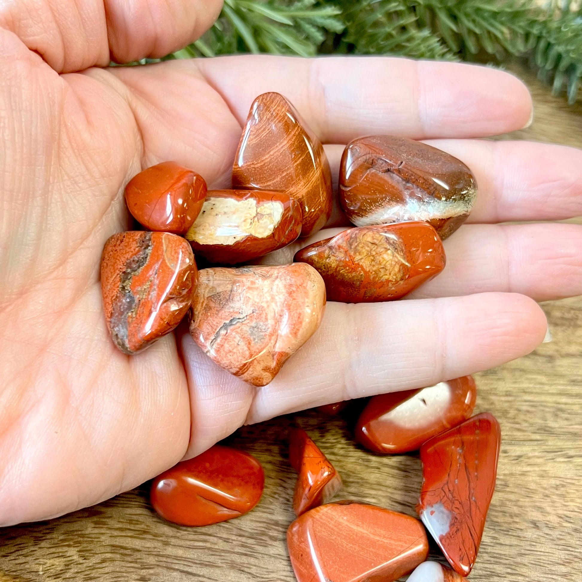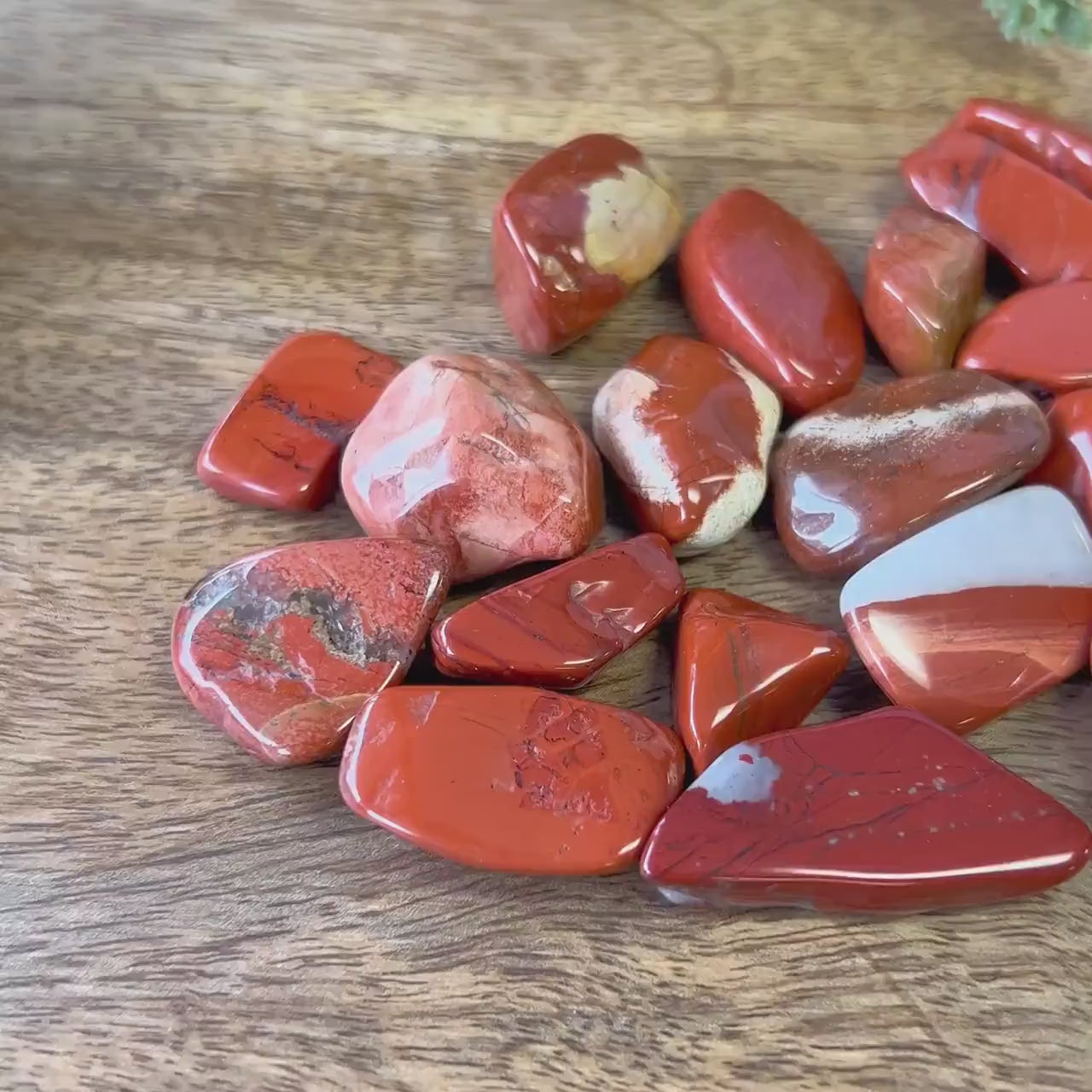 Enhance your spiritual practices with these beautiful tumbled Red Jasper crystals. Their radiant ruddy hue perfectly represents the vibrant energy they're so well known for. Red Jasper serves as a powerful reminder of your own inner strength. Carry it as a talisman for courage and boosting self esteem. It's also a perfect choice for root chakra work, tackling feelings of instability and insecurity.