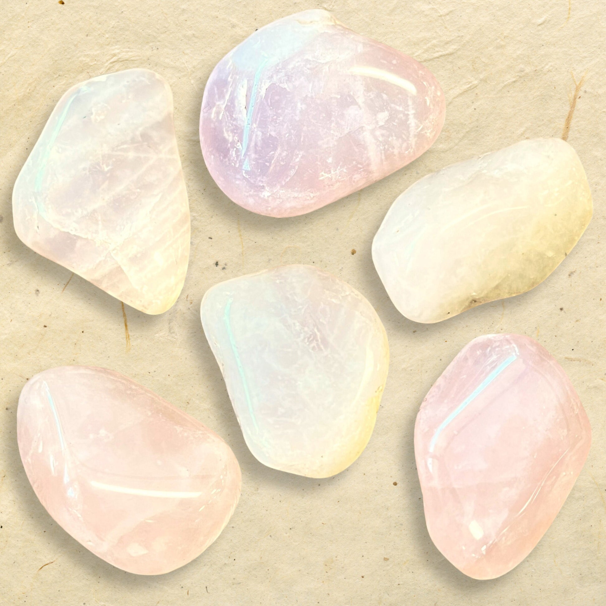 Enhance your spiritual practices with these beautiful tumbled Rose Quartz crystals. Their color ranges from almost white to a delicate pastel pink. Known as the Stone of Love and tied to the Heart Chakra. Makes a perfect talisman for both self love and relationship spell work.