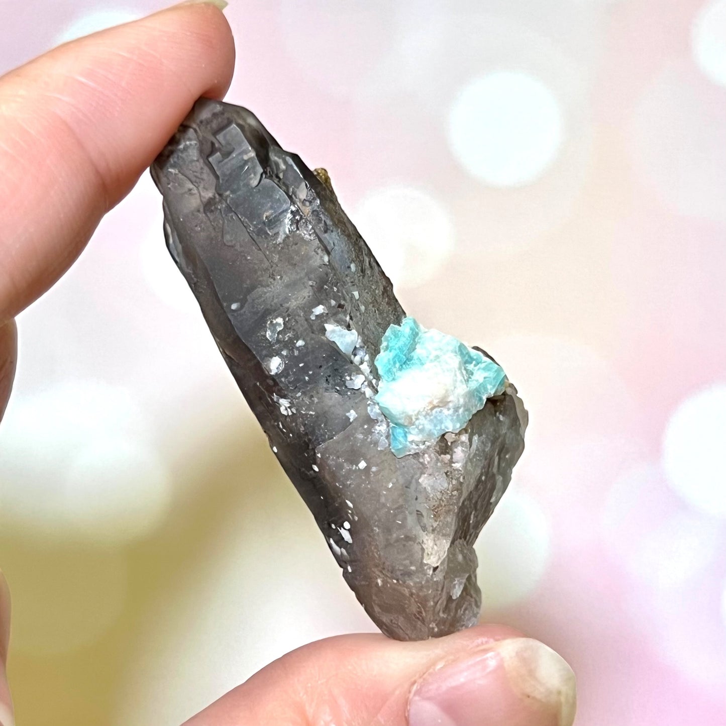 Enhance your spiritual practices with this beautiful Smoky Quartz natural gemstone specimen. This crystal features Amazonite inclusions and was mined from Vagabond Creek in Teller, Colorado.