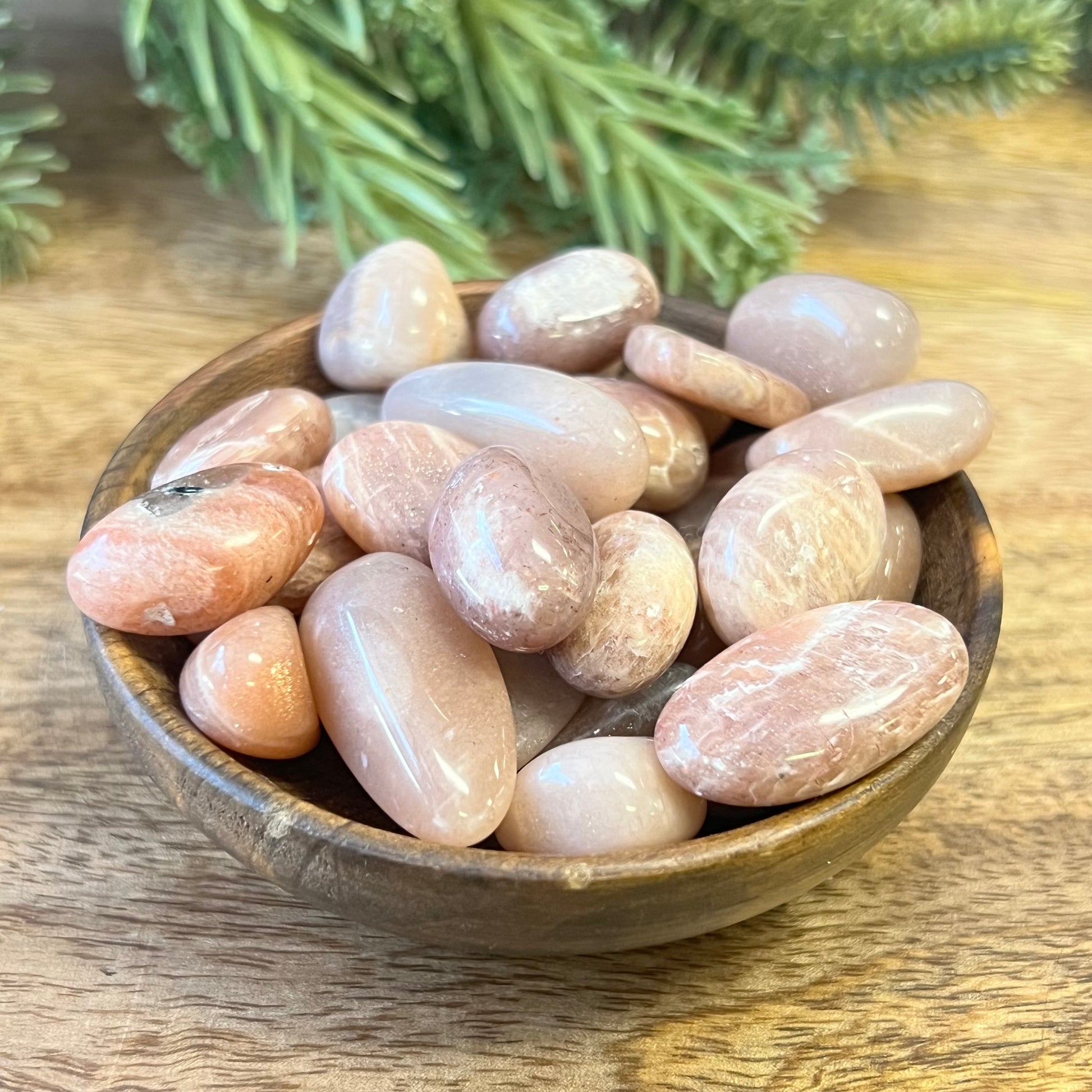 Enhance your spiritual practices with a beautiful Peach Moonstone tumbled stone. Some of them have little flashes and specks of sunstone.