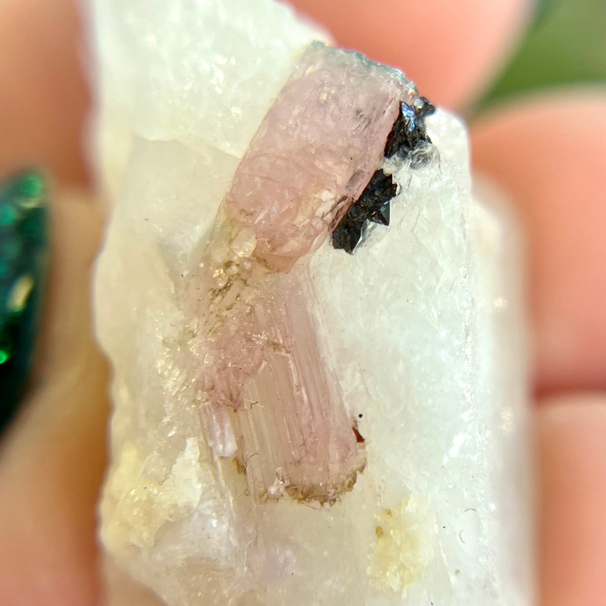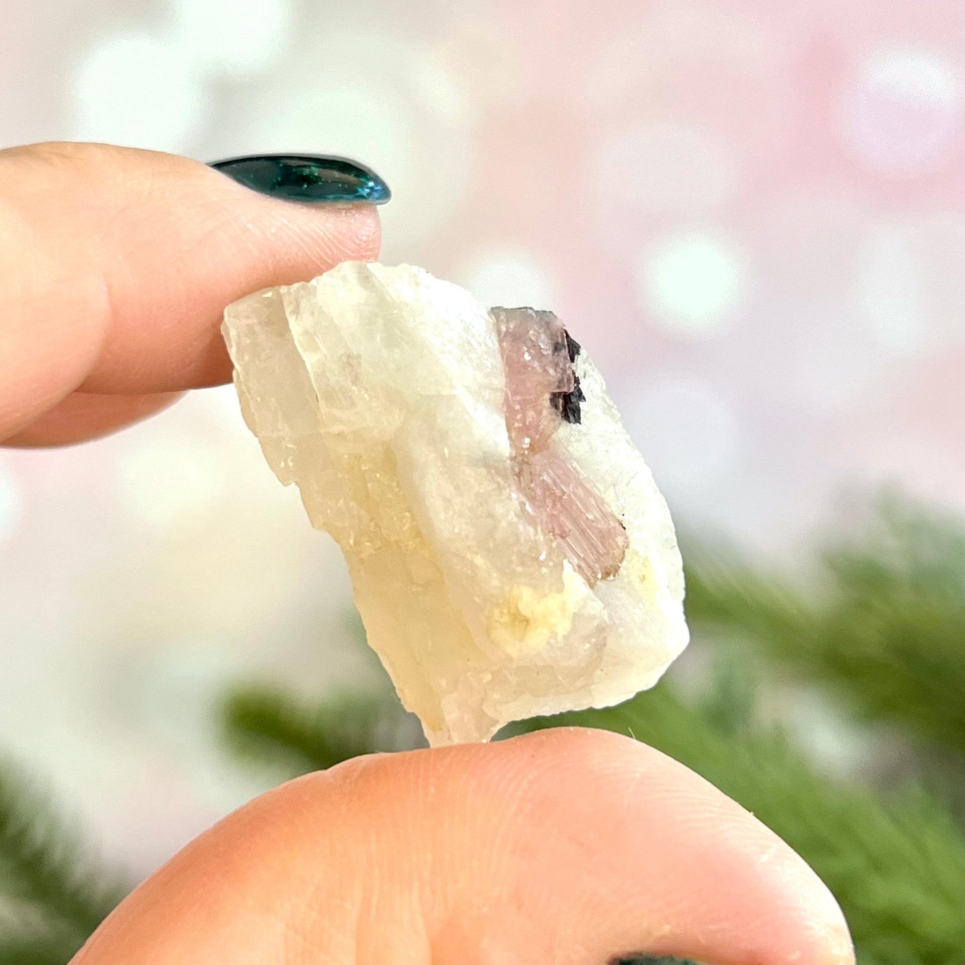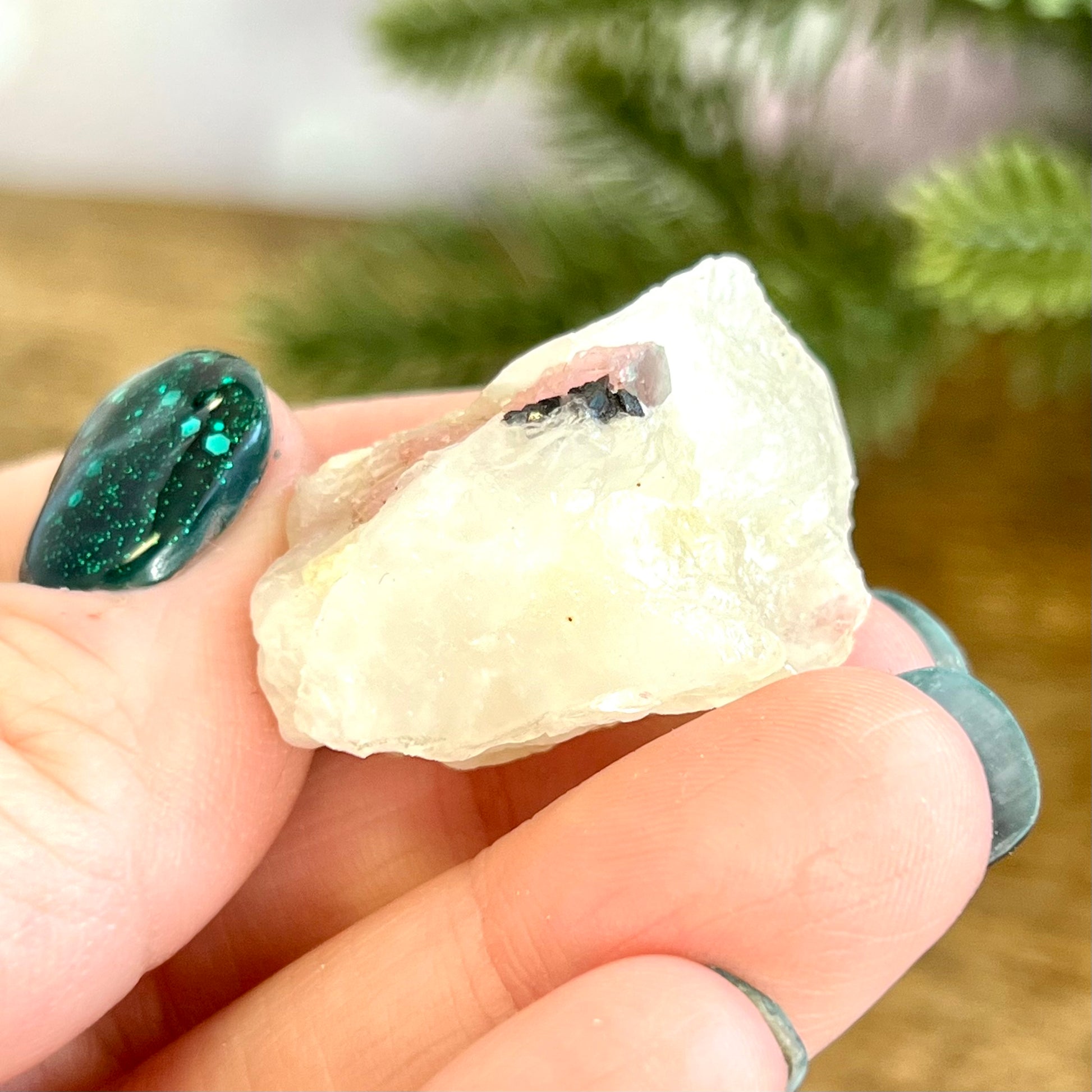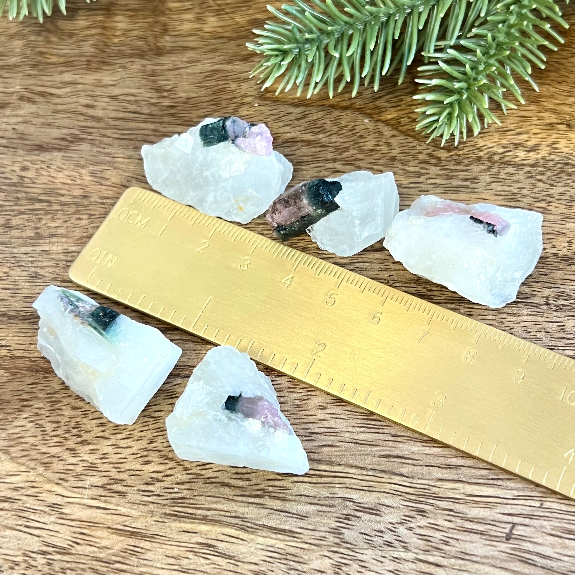 Enhance your spiritual practices with this beautiful Watermelon Tourmaline specimen. The Tourmaline sits on its host matrix of milky white Quartz. While the terminations on these pieces aren't the best, they have lovely color and are a great way to affordably own this crystal.