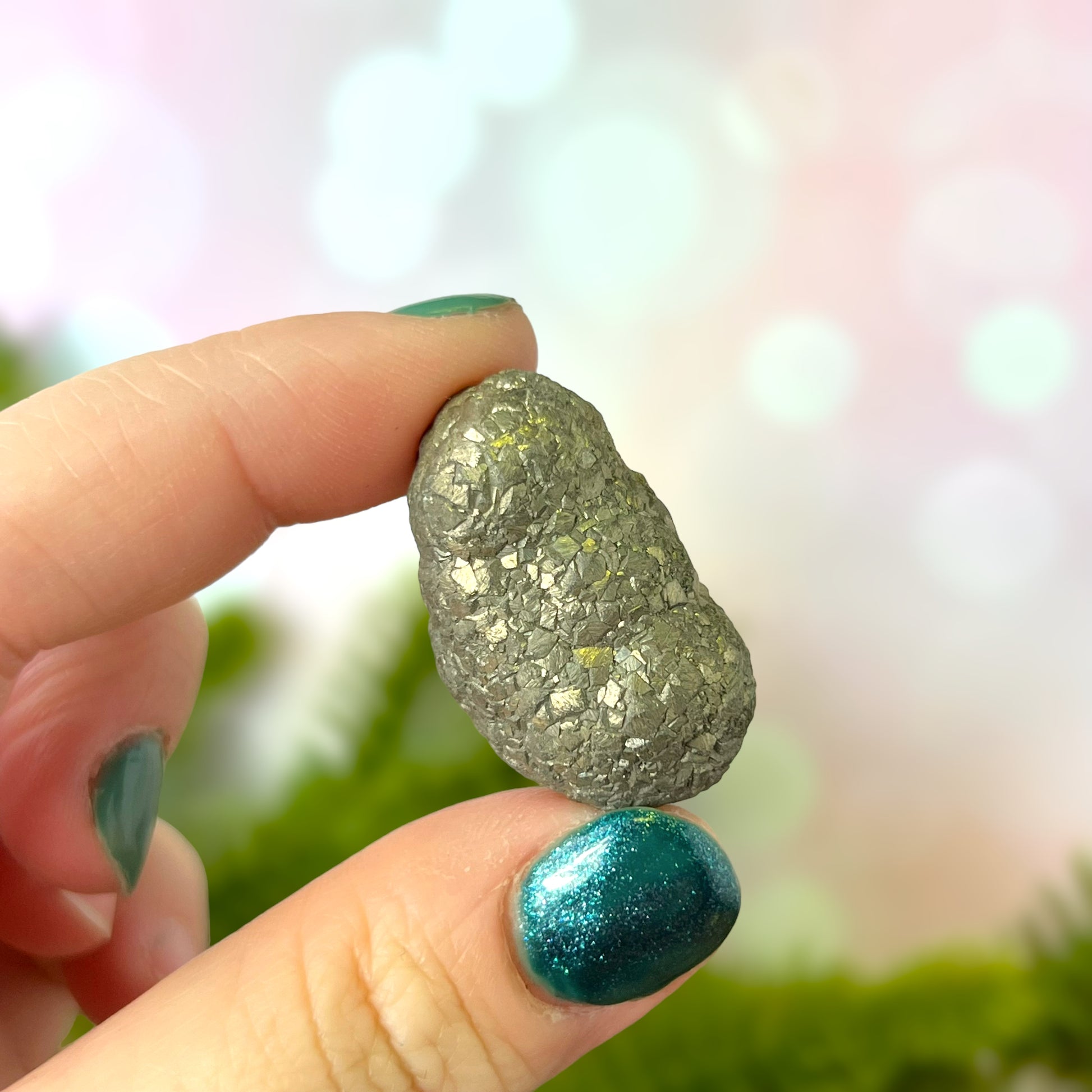 Enhance your spiritual practices with this beautiful Pyrite crystal. These specimens formed naturally in a ball shape, called a nodule or concretion. They're heavy for their size, and very grounding to hold!