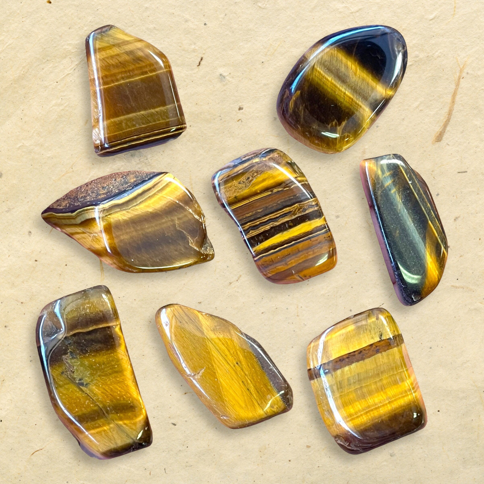 Enhance your spiritual practices with these beautiful tumbled Tiger's Eye crystals. Their radiant golden hue perfectly embodies the solar energy, bringing warmth and stability.