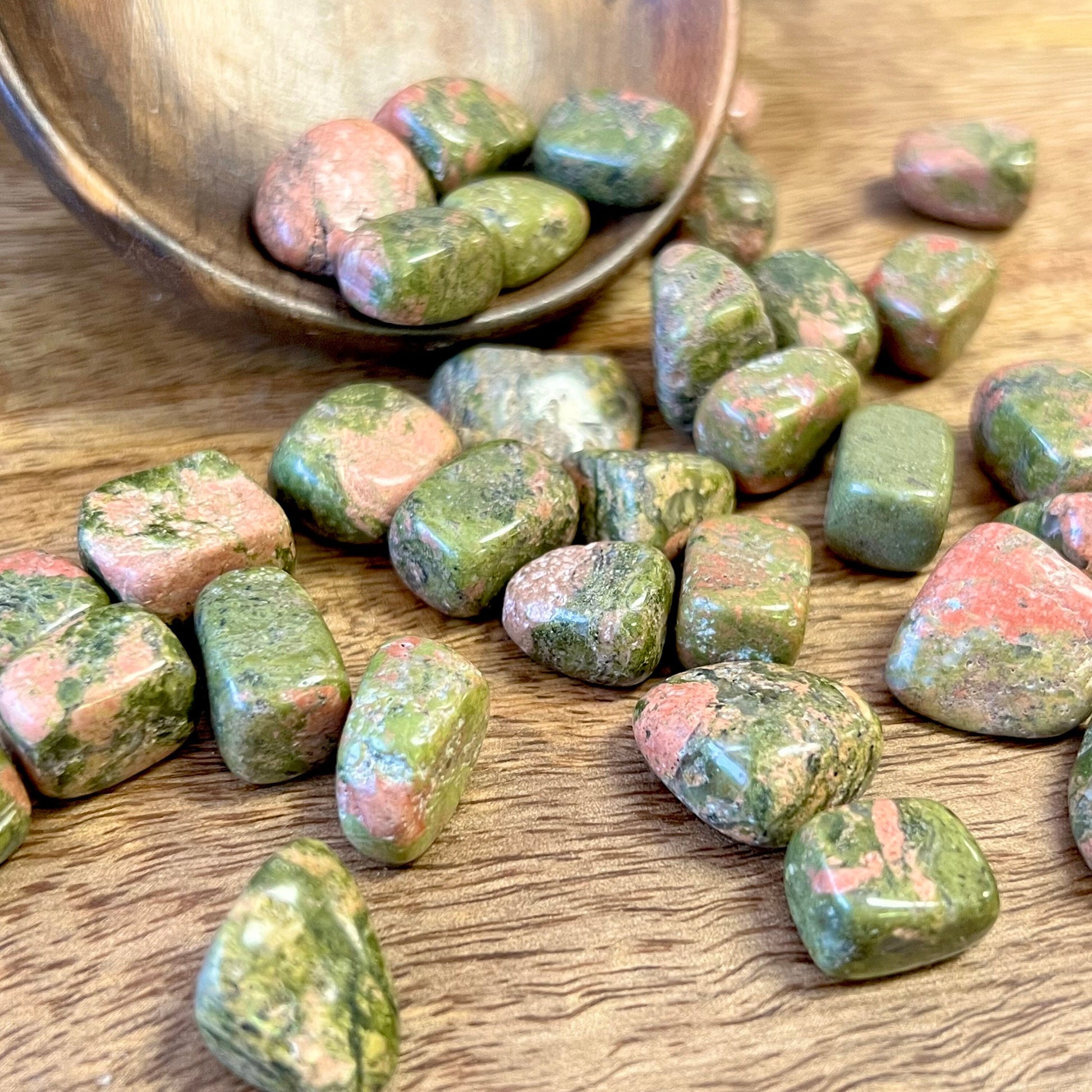 Enhance your spiritual practices with these beautiful tumbled Unakite crystals. Their earthy pink and green hues perfectly embody the self love and gentle nurturance they represent. Unakite serves as a powerful reminder to slow down and take a moment for yourself. Rest is just as important as hard work. We recommend Unakite for people who push themselves too hard, and need an extra nudge towards self compassion.