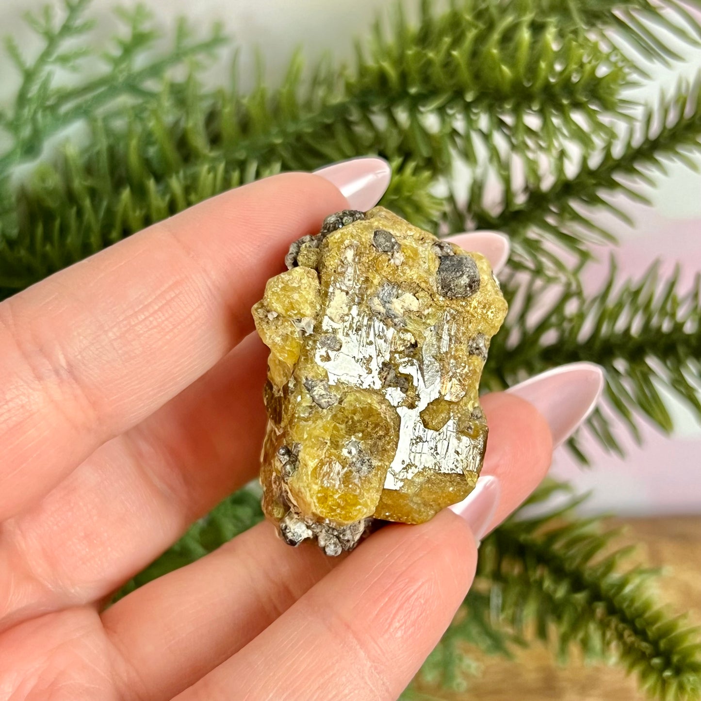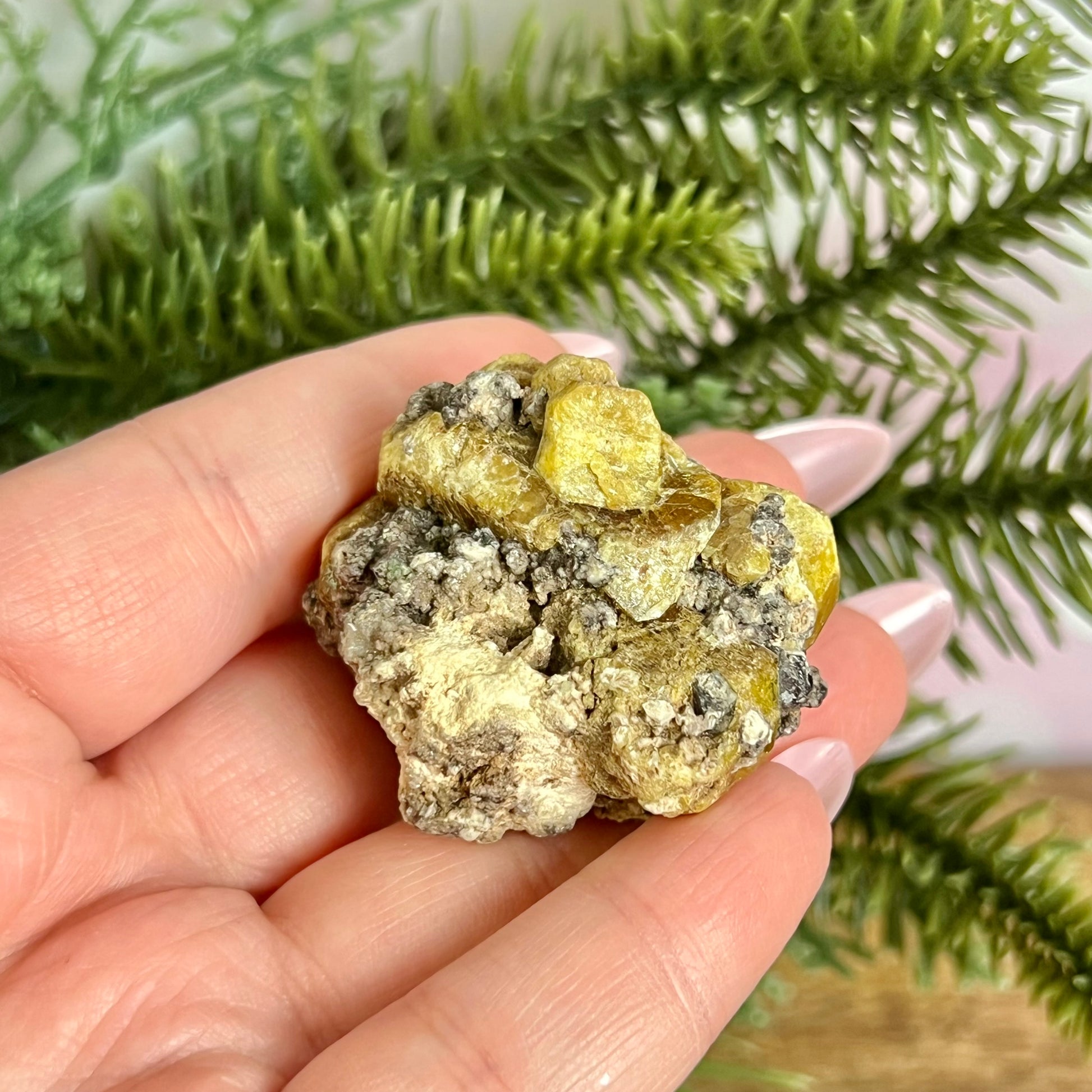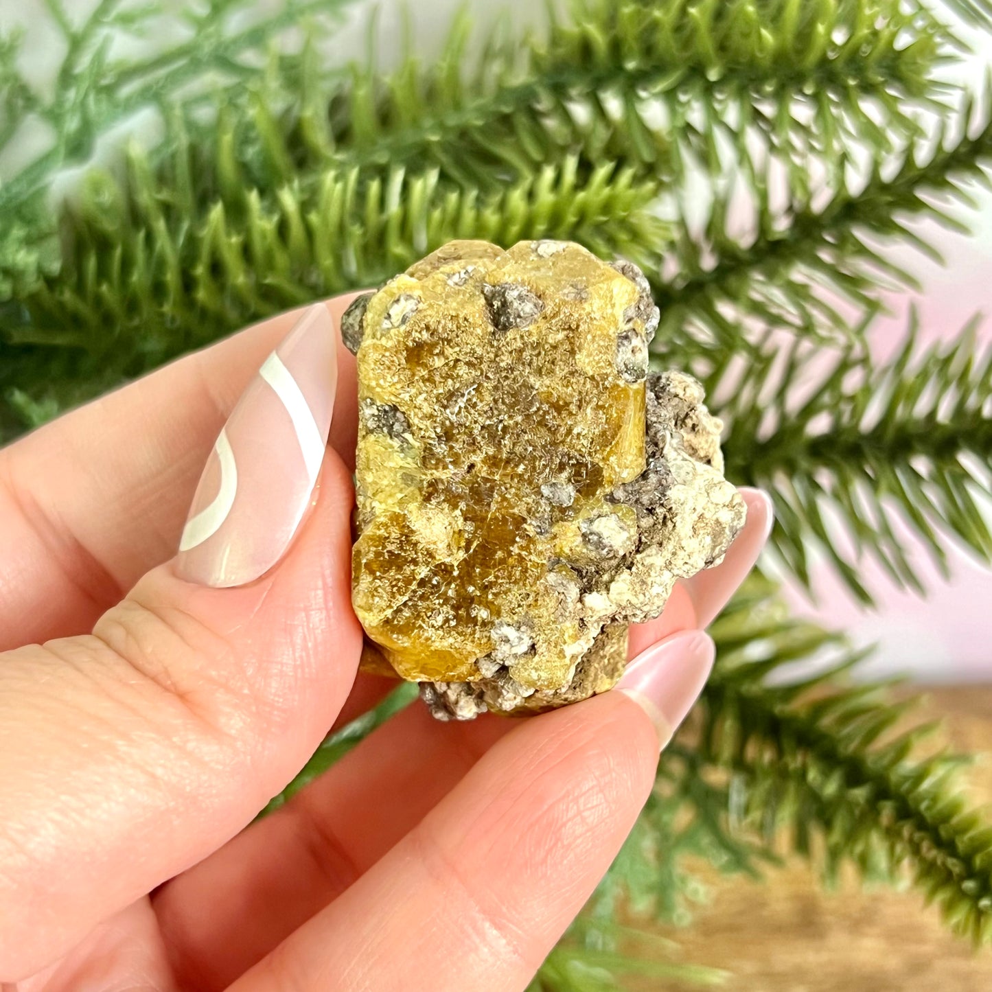 Enhance your spiritual practices with this beautiful Vesuvianite natural gemstone specimen. This crystal features a lovely mustard yellow color with some beige matrix.