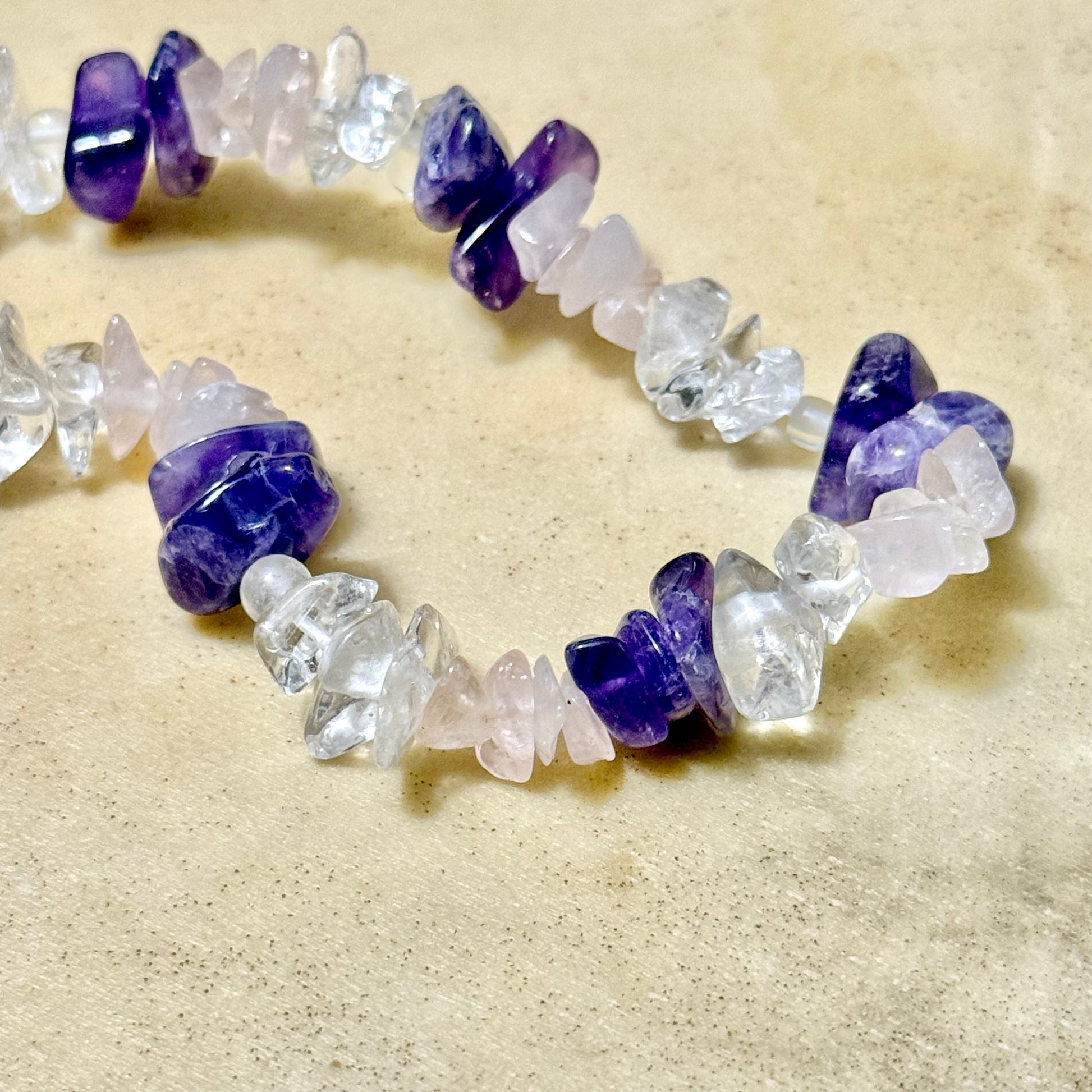 Vintage Amethyst, Rose Quartz, & Quartz Chip Bead Necklace