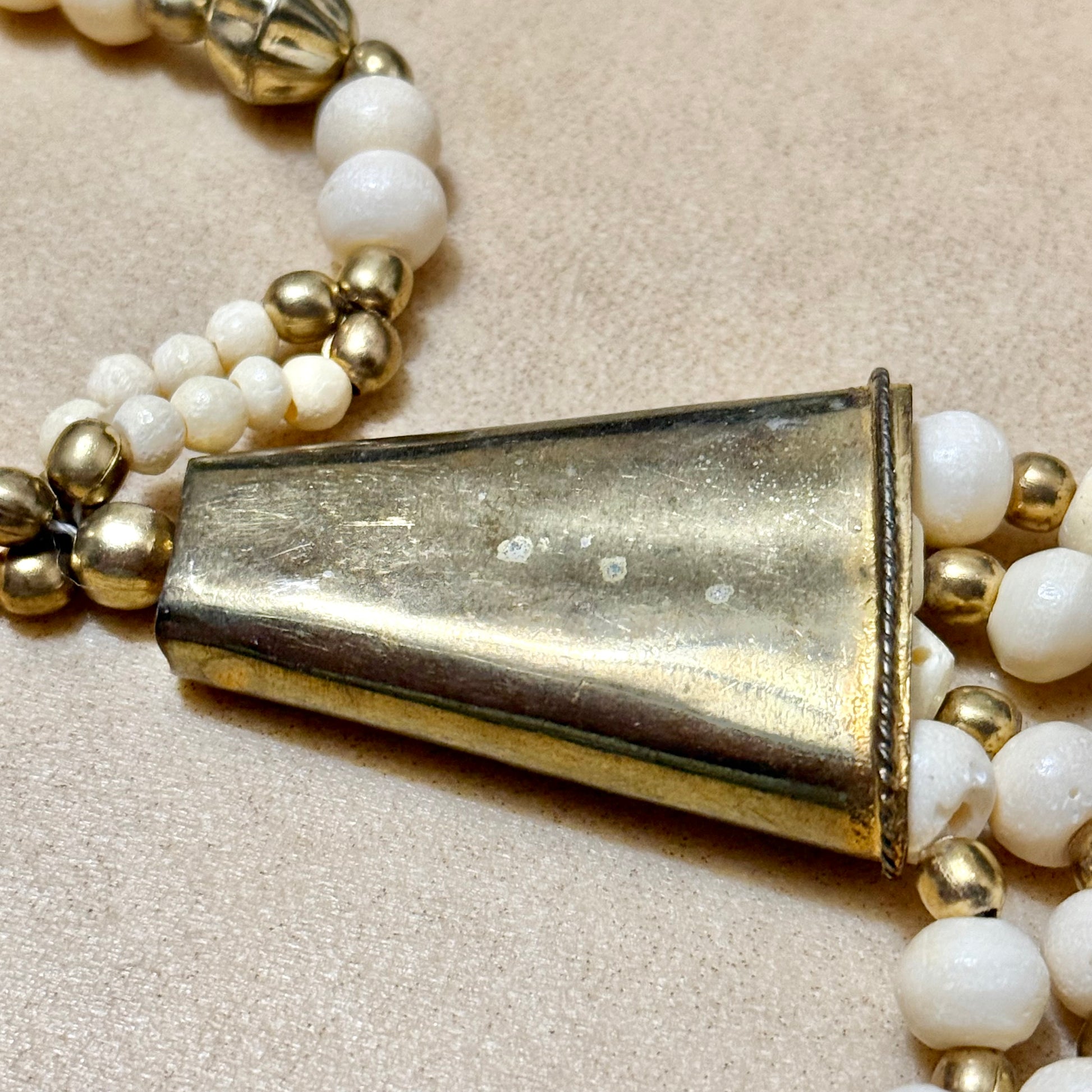 Vintage Bovine Bone & Brass Multi Strand Beaded Necklace