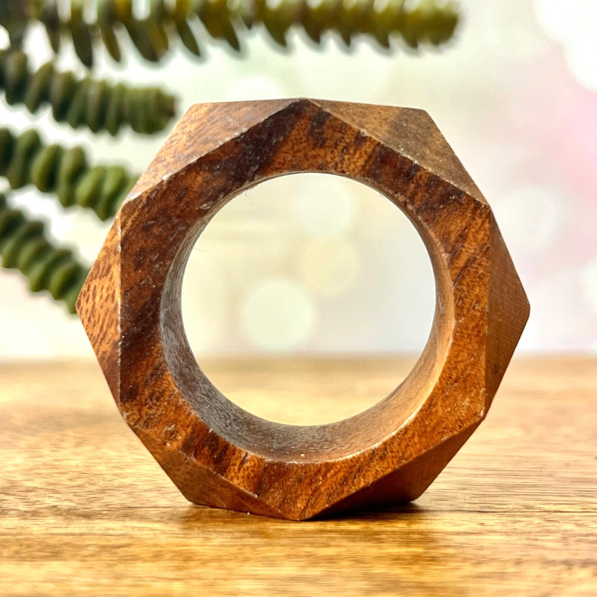 Unique and vintage sphere holder to display your crystal in style! These are a beautiful warm wood, faceted into a hexagonal shape. A perfect touch of class, especially for a dark academia, cottagecore, or naturalism vibe.