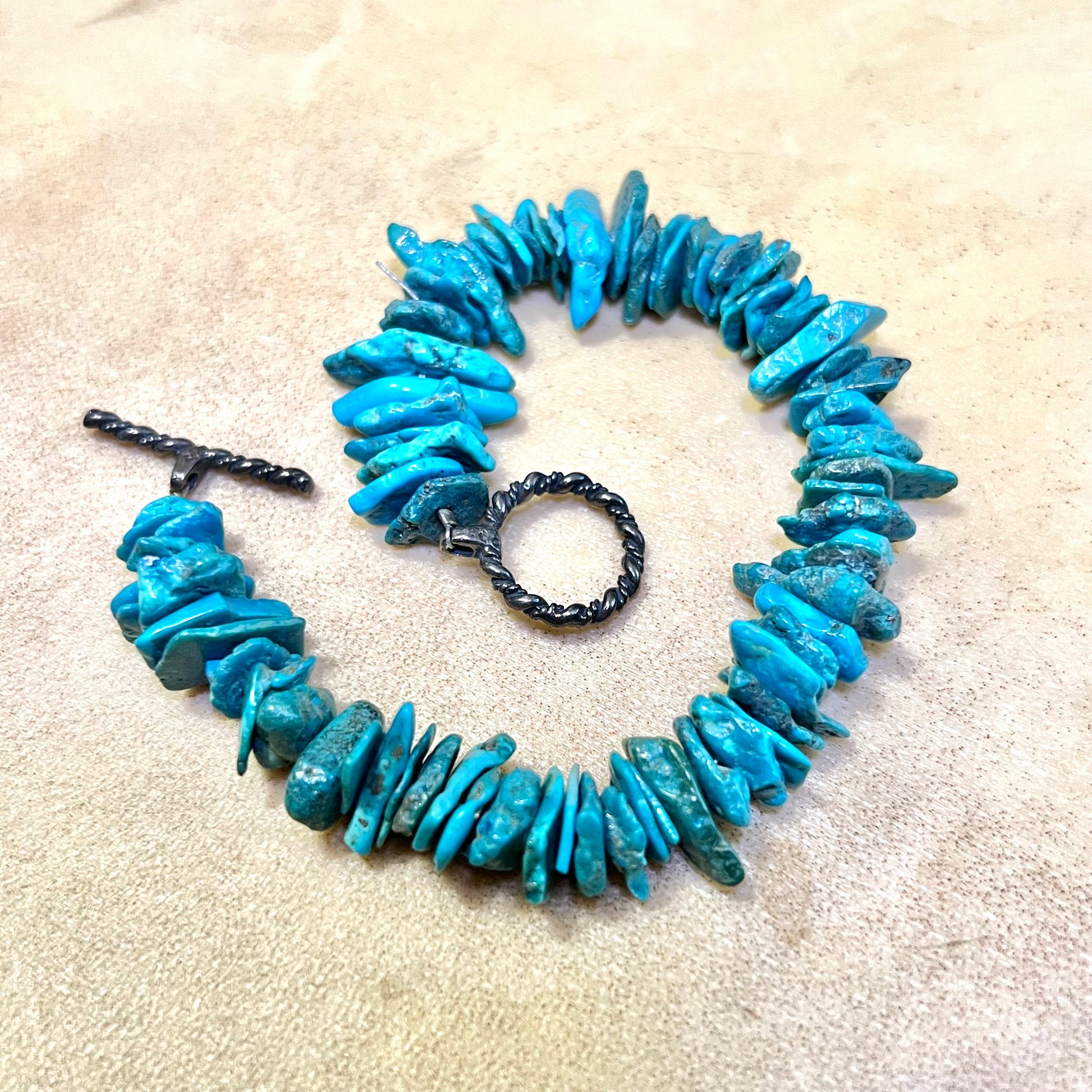 Vintage Genuine Turquoise Chip Bracelet with 925 Sterling Silver Toggle Clasp